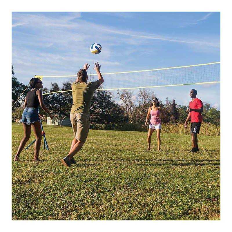 - Includes all parts required to play either volleyball or badminton.