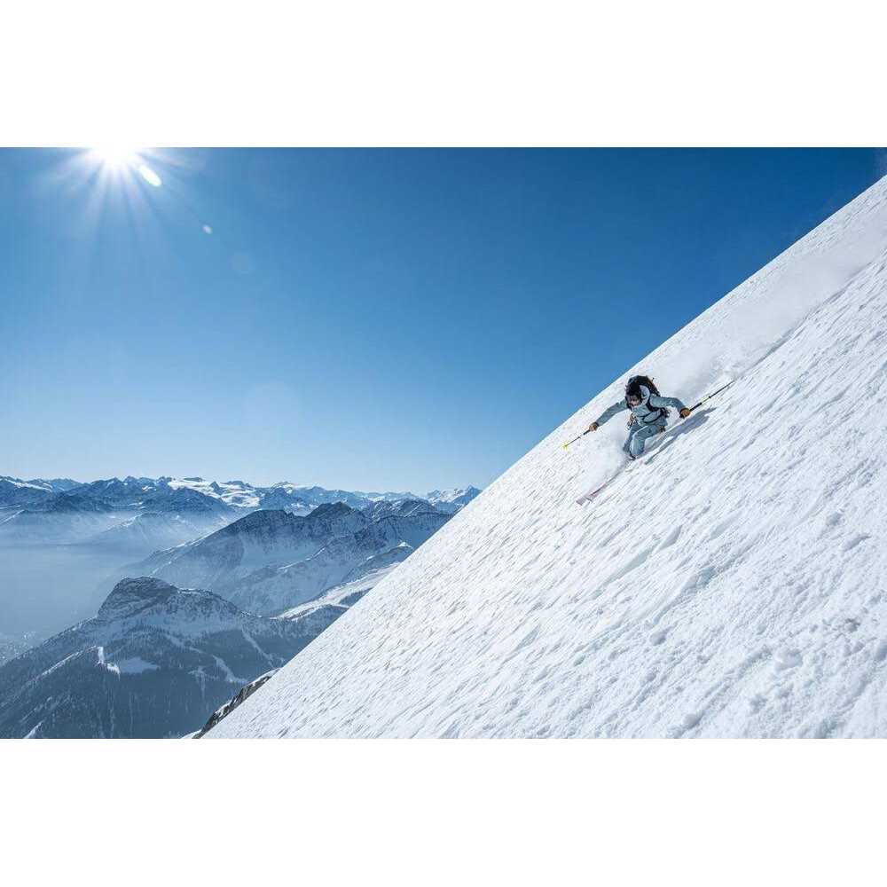 - Medium flex over the entire ski length: performance and forgiveness.