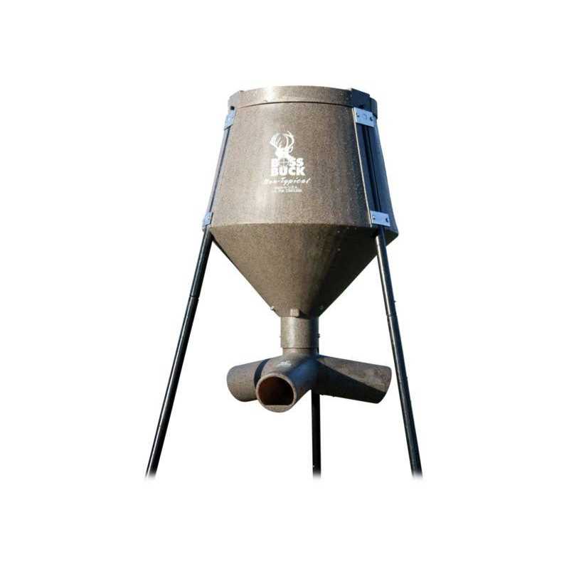 These 200# Protein Wildlife feeders are the best! This maintenance FREE patented Hopper design gives you the flexibility to Gravity feed protein in the Spring & Summer and converts over to an Automatic feeding system in the Fall and Winter months. The Custom Designed head features a 10 angle, and a 1 overhang on the 4 I.D. feed ports. Each feed port has a drain hole to disperse any water that enters the tip of the feed port. Our patented design features an internal cone that dispenses the feed evenly to the three ports. The 3-Way inner sleeve allows the user to control the feed flow of almost all feed shapes and sizes. Push it all the way up to virtually shut off the flow, or ease it down until you get the optimal flow on your favorite type of critter food. This is the most user friendly, versatile Wildlife feeder system on the market today. Our double walled hatch lid tops this unit off in style, and function. It allows the hopper system to breathe thus eliminating condensation while achieving ambient temperature faster than Steel or Fiberglass feeders. These feeders are great for remote location feeding where access is limited to ATVs and foot access only. Deploy the Boss Buck 200# feeders in those out of the way honey holes for excellent results!