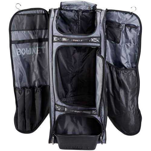 The Commander is ideal for travel ball, off-season college practice, and even professional players. It has a total of 14 compartments to hold protective gear and game equipment. The main storage area has a molded semi-hard case for your helmet and spikes, and removable shelving for uniforms, pads, masks, and baseball.