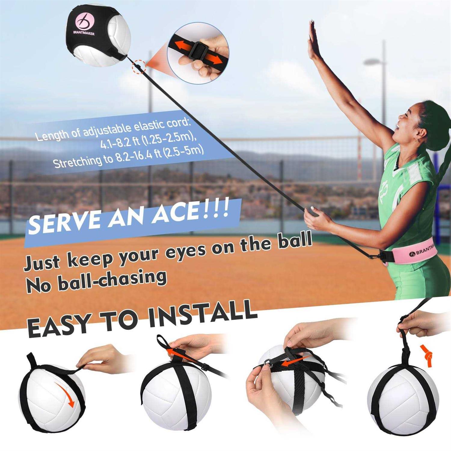 Outdoor Volleyballs by BRANTMAKER. Details:Brantmaker volleyball training equipment provides 3 types of volleyball training equipment, including serve, set and spike training. Comes with a drawstring backpack that can hold ball, installation guide and basic skills training guide.Just a small space can you move forward your volleyball journey anytime and anywhere. BRANTMAKER volleyball serving trainer is your valuable helper of solo-practicing.The elastic cord helps rebound and can be adjusted in length according to different heights and arm lengths. No weather restrictions and no worry about disturbing your neighbors. Celebrate your ACE in advance! Brantmaker volleyball training aids help to repeat exercises efficiently and form muscle memory. The height-adjustable hitting trainer is to train jumping and arm swinging. The length-adjustable setting straps helps you maintain the correct setting hand position.Brantmaker volleyball training kit is suitable for beginners and volleyball…
