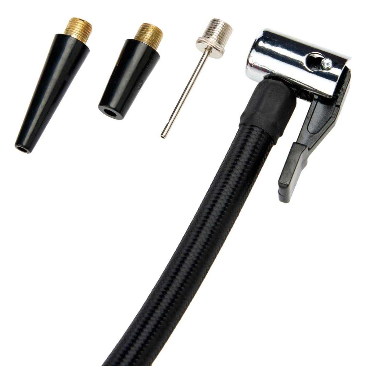 Pre-set Pressure w/ Auto Shut Off – set desired pressure on Digital Tire Inflator, and device automatically shuts off once desired pressure is reached. Easy-to-read LED screen displays current tire pressure and battery level, and user-friendly increase/decrease buttons make calibration super easy and accurate. Maximum of 150 PSI – quickly inflates a tire from 24psi to 34psi in less than 2 minutes; Bullseye Pro delivers 25 liters of air per minute to get the job done quickly and efficiently. Rechargeable: Comes with 2 different chargers – a 1 meter USB-type home charger, and a 3 meter cigarette lighter car charger, offering versatility and convenience. Compact in size with included carrying bag makes storing this Portable air compressor easy. With LED Bulbs: 4 Built-in powerful LED lights on device head illuminates work area and LED screen allows you to pump air in total darkness with pin point accuracy to give you peace of mind wherever you go. Product Dimensions, Features and Components: H 10.16 x W 3.15; Weight: 1.9 lbs. Units of measurement: KPA, PSI, BAR, KG/CM; comes with 3 nozzle attachments + 1 spare fuse (15A); On/Off button.