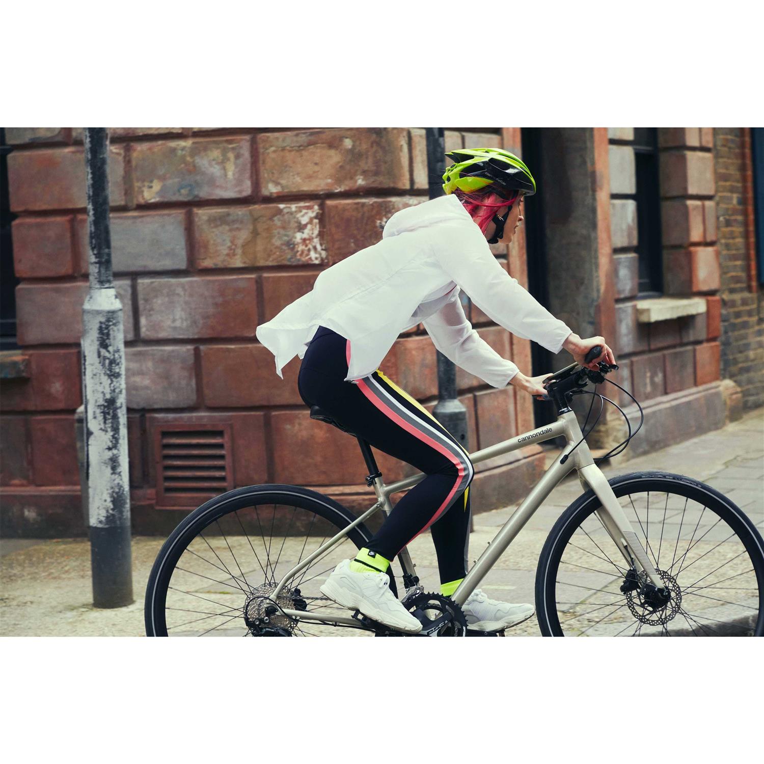 Quick bikes are the lightest in their class, making them easier to pedal, easier to lift, and easier to loveAll Quicks feature a new, updated frame that’s lighter weight, with refined SAVE micro-suspension features, easy-to-use StraightShot internal cable routing, and a sleek new look. Most Quick models feature an all- new way for riders to connect with the ride experience. An integrated wheel sensor pairs with with a new, free Cannondale App and tracks activity (like speed, distance and calories burned), registers the bike, sends service reminders and more. Bump-absorbing SAVE micro-suspension, comfy grips and new pressure-relieving saddles for comfort. 360° reflective accents for visibility. Rack and fender mounts for versatility.