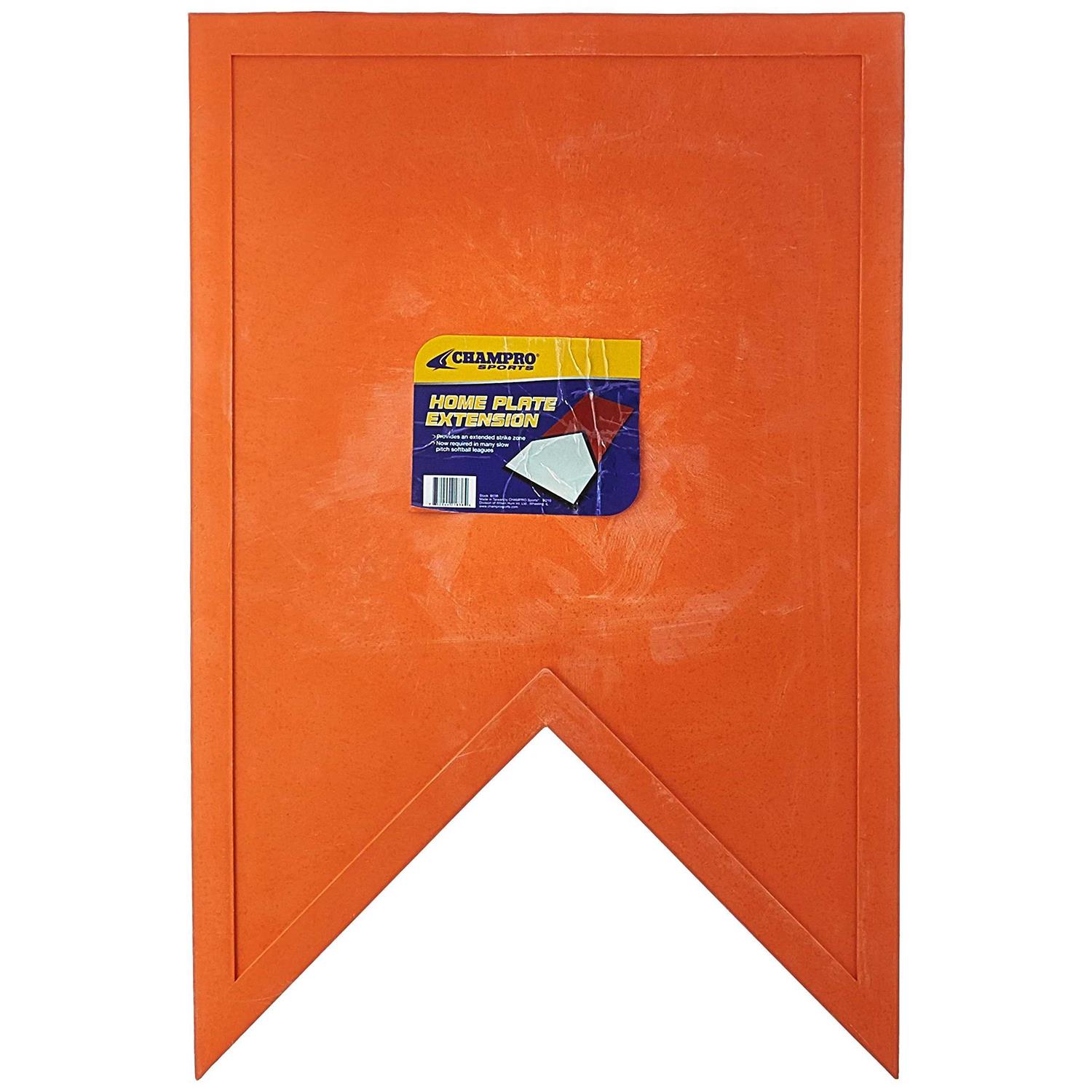 Thow down the CHAMPRO Orange Home Plate Extension behind an existing home plate to extend the strike zone and help umpires with their calls. Its required for most slowpitch leagues, but is a handy aid regardless of whether its required or not. Made of durable rubber and measures. 25×16.