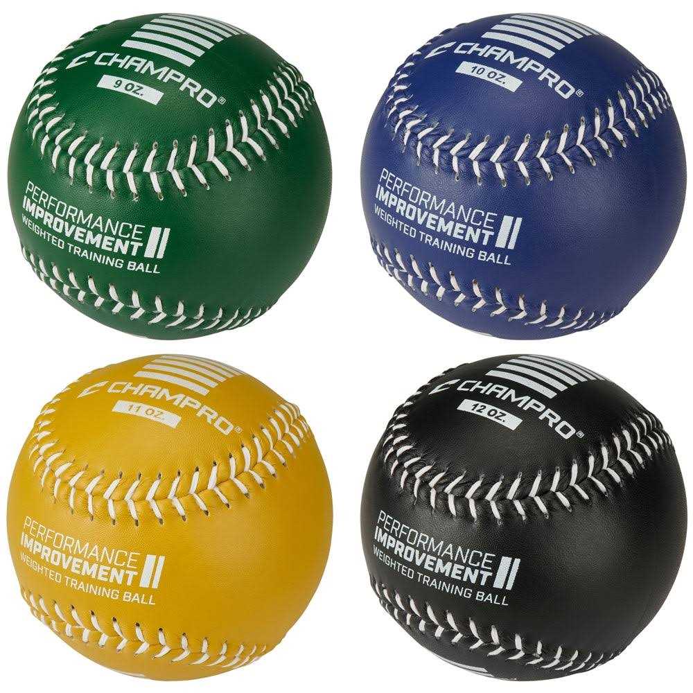 Fast-Pitch Softballs by CHAMPRO. Details:CHAMPRO Weighted Training Softballs provide a way for players to improve their in-game performance. Many players agree that weight variation training can increase their velocity when playing with a regulation game ball. Train with progressively heavier balls to work on building arm strength and throwing velocity. CHAMPRO’s weighted training softballs have stripe patterns that allow pitchers to monitor the pitch rotation, helping them develop their skill set. These softballs have raised seams and leather covers that are made to last. Select your choice of weighted balls to create a weight variation set customized to your needs and goals. Available in weights from 9 to 12 ounces in bulk or retail packaging. WARNING: Weighted balls should not be hit with a bat or thrown to another player. They should only be thrown into screens or used for stretching exercises.