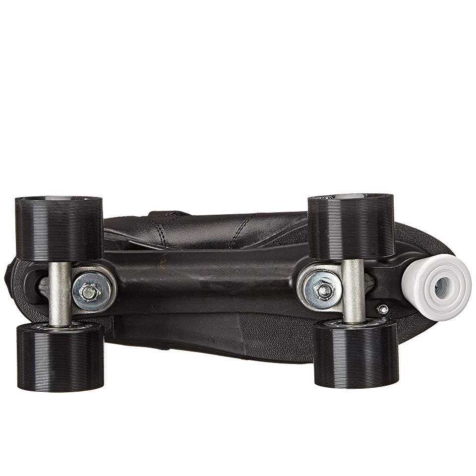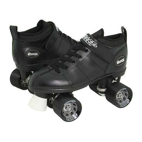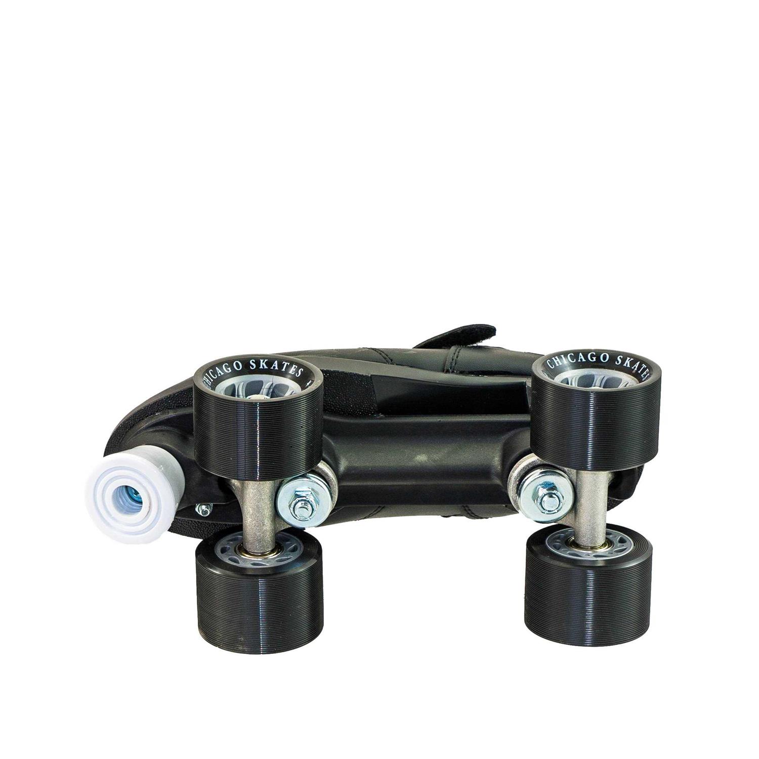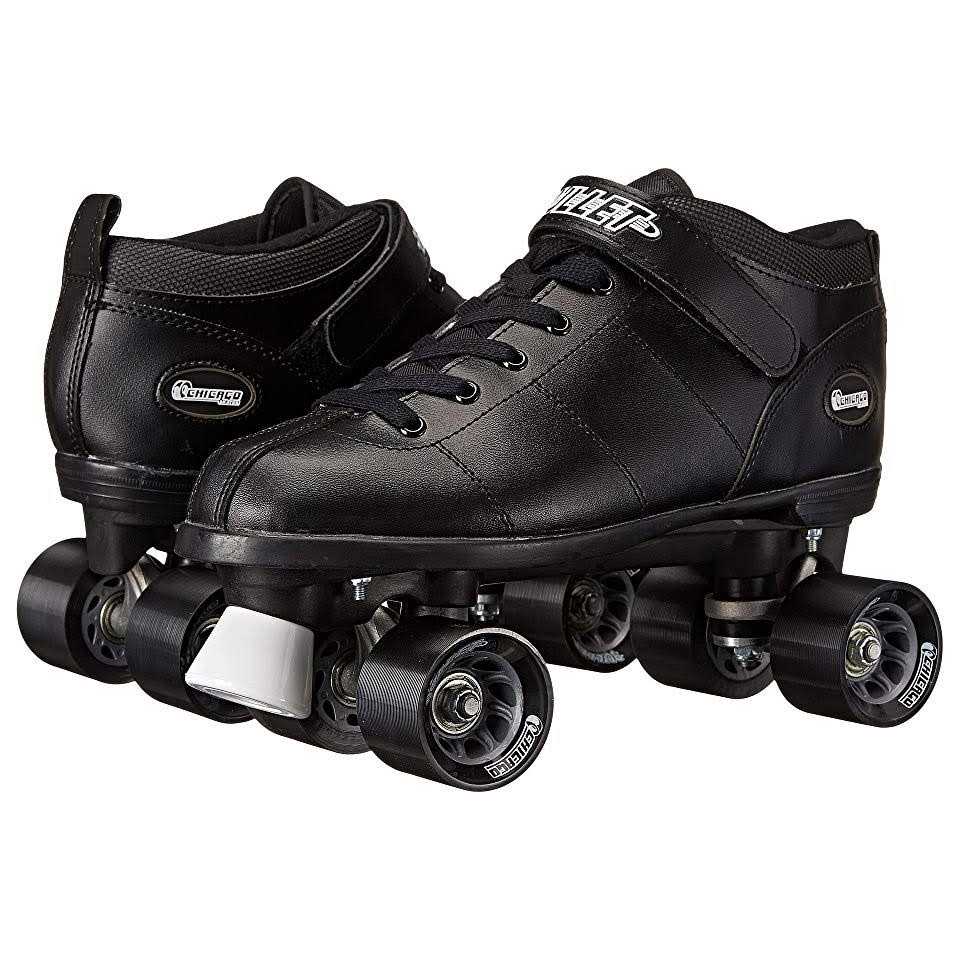 Comfortably show off your speedy skating skills in the Chicago Men’s Bullet Speed Quad Roller Skates. The low-cut speed profile boots with padded ankle collars, rear pull tabs, sturdy double adjustable aluminum trucks and lightweight nylon chassis offer the durability and strength you’re looking for in classic speed skates. Grooved high rebound cast urethane wheels and ABEC 3 bearings add smoothness for a solid grip during push off.