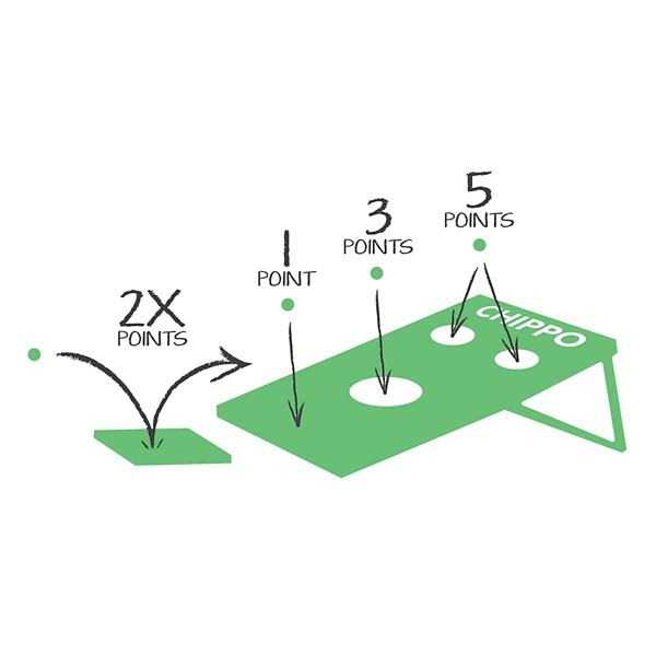 Chippo is a mind-blowing golf game that brings extra fun to the beach backyard tailgate office and clubhouse. This patented design combines the old fashioned beer-slugging sunshine-basking goodness of games like cornhole with the gentlemanly giddiness-inducing side-betting beauty of golf. It’s the only backyard game where you can work over your buddies while working on your short gamerevolutionary! Like all great and beautiful things playing Chippo is pretty simple. Set up the boards about 15 feet apart with the chipping mats sitting just in front of each then find three friends or highly skilled pets and you’re ready to start chipping! Enjoyed by junior golfers weekend hackers and PGA Pros alike it’s no wonder why it was awarded the Best New Product Award at the 2018 PGA Merchandise Show and featured on Golf Digest’s Best Gifts for the Golfer Who Has Everything.