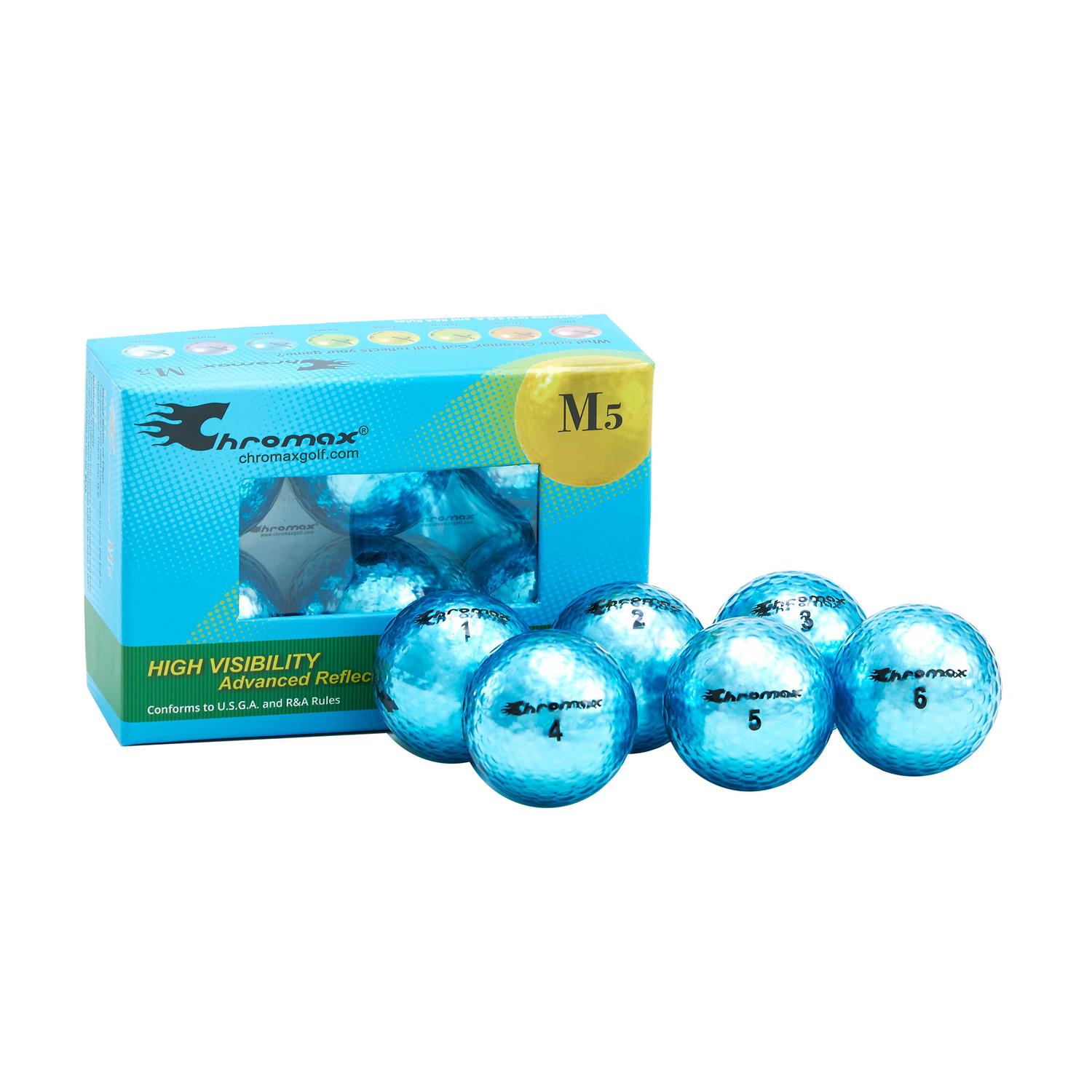 The Chromax M5 is our newest, patented metallic golf ball, tested to Conform to USGA and R&A Rules for tournament play. The new M5 75 compression core, combined with larger dimples, gives your drives more distance. The durable Surlyn coating delivers solid control around the greens and gives the ball longevity to play several rounds. Many men and seniors are seeing the visual advantage of our reflective coating. They are finding a competitive edge over other colored golf balls, with our unique undercoating that catches the light and can be seen with greater success while tracking in the air, locating on the fairway and in the rough. Chromax golf balls appeal to all ages and skill levels. Do you want to make friends on the golf course? Have a few extra Chromax in your bag, because they are a magnet for golfers who have not seen them before. They make a GREAT golf gift for the partner who constantly confuses their ball with your own. Junior golfers love our cool colors and women typically find a color that resonates with their game, making it more enjoyable + fun = better game. Many golfers who are visually impaired have shared their golfing success with Chromax and in some cases, they would not be able to play this great game any longer, if it werent for their chosen reflective, Chromax colors. The new M5 boasts 8 beautiful, high visibility colors, gold, yellow, silver, green neon, orange, pink, blue and purple. What color reflects your best game? Chromax golf balls are invented and manufactured by a physicist, materials engineer and scratch golfer. An extraordinary combination of knowledge to build winning golf balls.