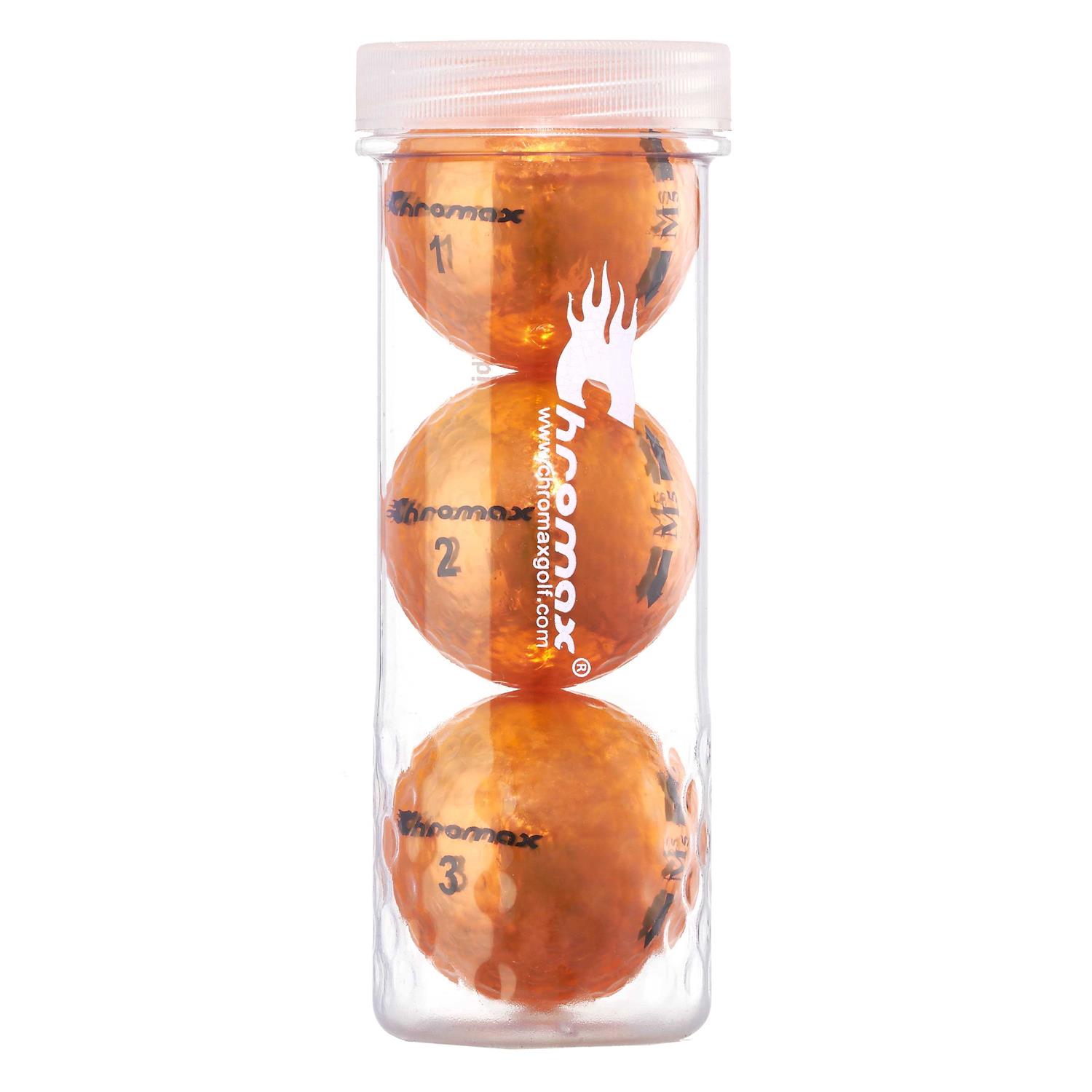 The Chromax M5 is our newest, patented metallic golf ball, tested to Conform to USGA and R&A Rules for tournament play. The new M5 75 compression core, combined with larger dimples, gives your drives more distance. The durable Surlyn coating delivers solid control around the greens and gives the ball longevity to play several rounds. Many men and seniors are “seeing” the visual advantage of our reflective coating. They are finding a competitive edge over other colored golf balls, with our unique undercoating that catches the light and can be seen with greater success while tracking in the air, locating on the fairway and in the rough. Chromax golf balls appeal to all ages and skill levels. Do you want to make friends on the golf course? Have a few extra Chromax in your bag, because they are a magnet for golfers who have not seen them before. They make a GREAT golf gift for the partner who constantly confuses their ball with your own. Junior golfers love our cool colors and women typically find a color that resonates with their game, making it more enjoyable + fun = better game. Many golfers who are visually impaired have shared their golfing success with Chromax and in some cases, they would not be able to play this great game any longer, if it weren’t for their chosen reflective, Chromax colors. The new M5 boasts 8 beautiful, high visibility colors, gold, yellow, silver, green neon, orange, pink, blue and purple. What color reflects your best game? Chromax golf balls are invented and manufactured by a physicist, materials engineer and scratch golfer. An extraordinary combination of knowledge to build winning golf balls.