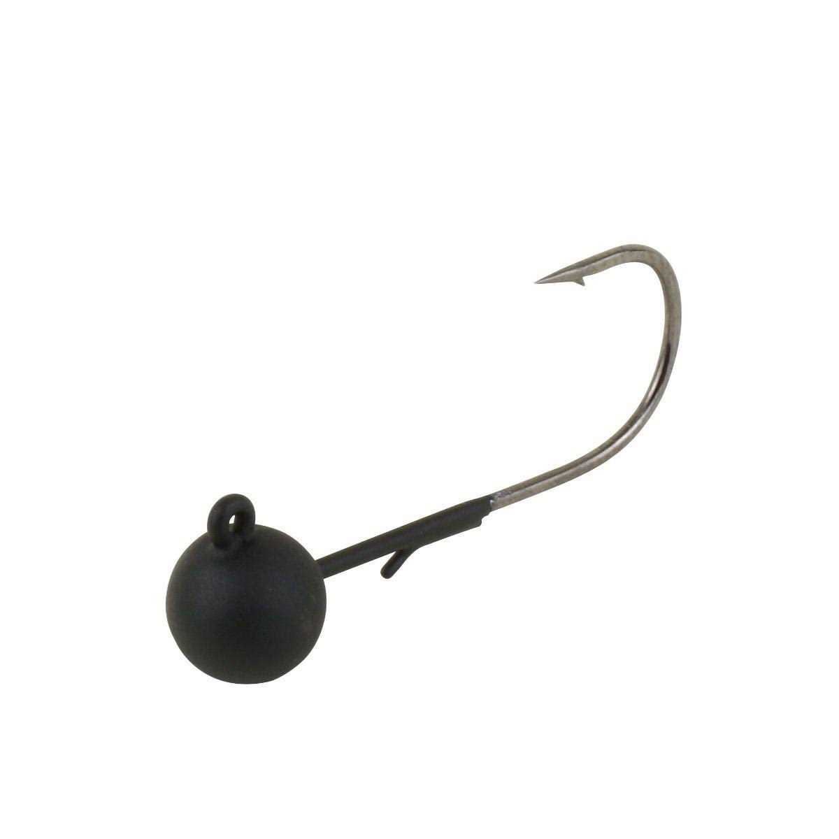 - Round ball jig with a 90-degree hook is perfect for live bait or plastics.