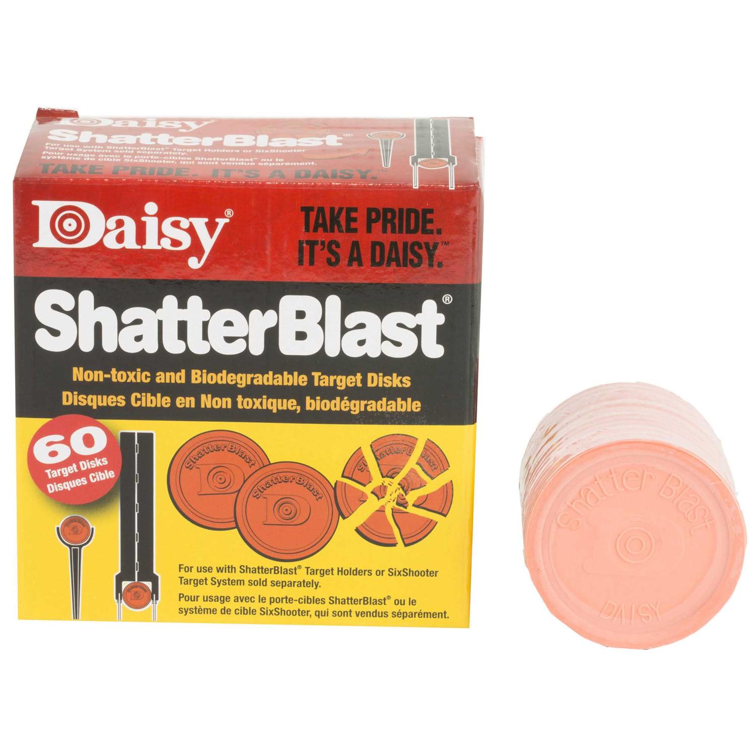 - Daisy’s ShatterBlast Breakable targets are interactive hunter orange, biodegradable and non-toxic