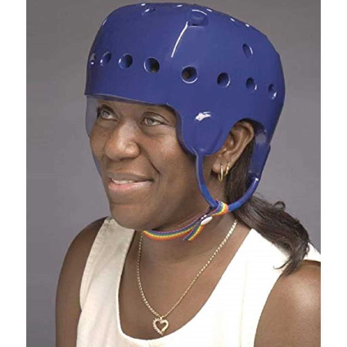 - Soft Shell Vinyl Medical Helmet, Fully ventilated while providing head coverage and comes with an easily adjustable snap-closure adjustable chinstrap.
