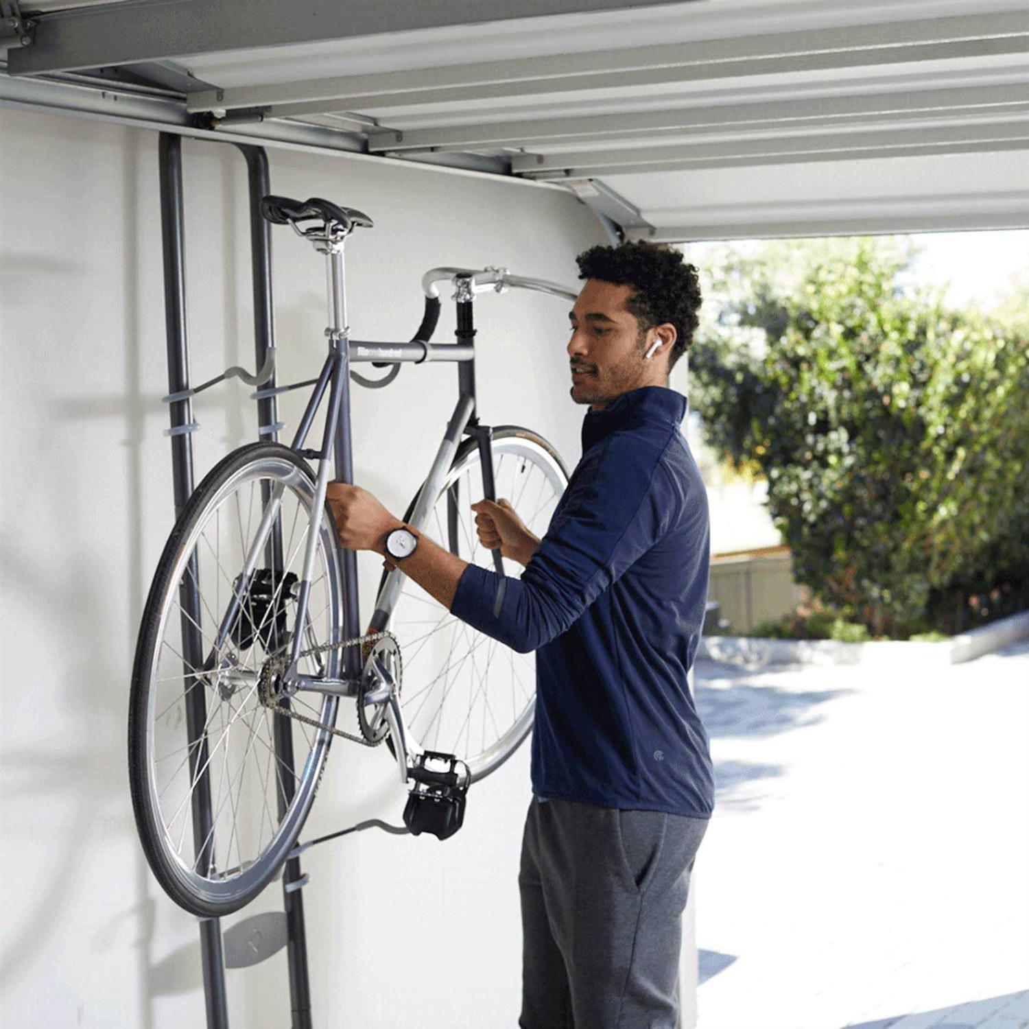 The Rugged 2-Bike Gravity Rack offers functional storage solutions in a contemporary art deco design. This unique product uses the force of gravity to harness superb support, reinforced by steel tube construction. Rubber bumpers conveniently protect your walls and floor from scratches and scuff marks. This silver powder-coated bike storage rack will help you make the most efficient use of your valuable space. Looks great in any home or garage.