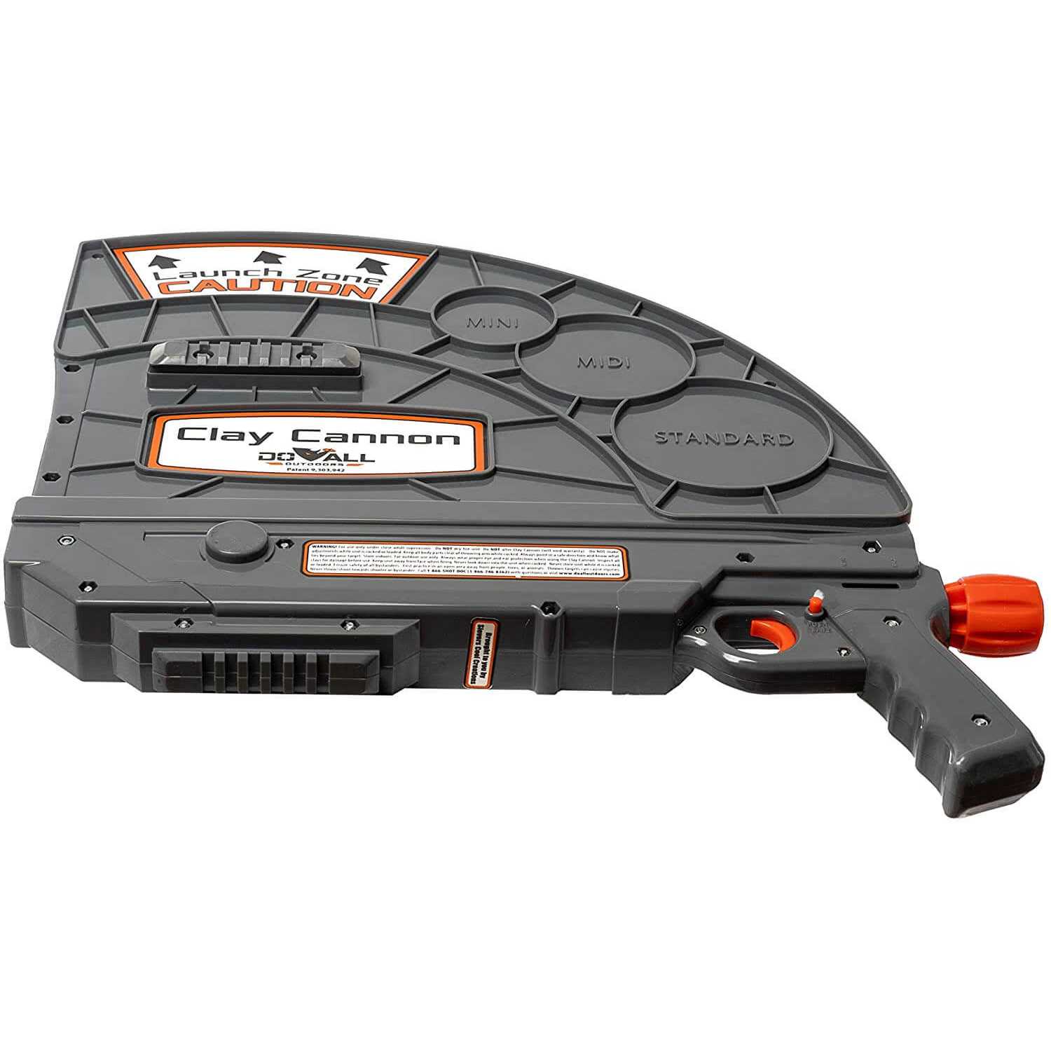The Do All Outdoors Clay Cannon is the first ever handheld clay pigeon launcher that will throw a mix of clay pigeons at one time in almost any direction you can aim. It can handle multiple clays stacked or nested, or even 2 Midi or 2 Mini clay pigeons side by side. For the first time ever, it is now as much fun to throw clay pigeons as it is to shoot them. Weighing less than 5 lbs, the Clay Cannon has unmatched maneuverability. It is simple to use and provides hours of clay shooting entertainment.