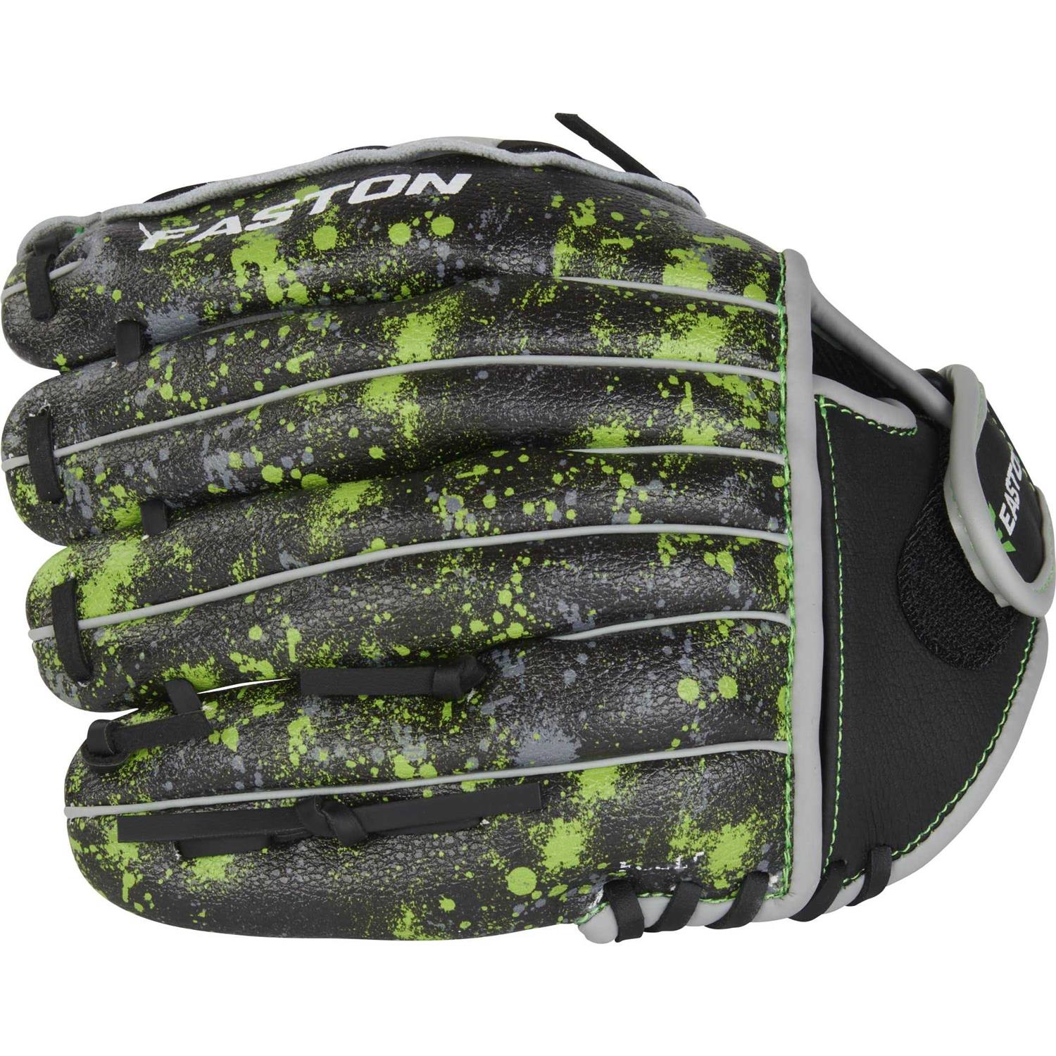 Get ready to cause some Havoc! This Easton Havoc Youth baseball glove is built to give your ballplayer a comfortable glove AND the confidence to play aggressively. For starters, you’ll see the paint-spatter style outer shell with eye-catching highlights. This PVC shell material is ultra durable and lightweight, making it perfect for players who are learning the fundamentals of defense. In addition, the soft palm lining and adjustable wrist closure means your player will have a secure and comfortable fit, even as their hands are growing. Get the glove built for BALL PLAYERS with an edge!