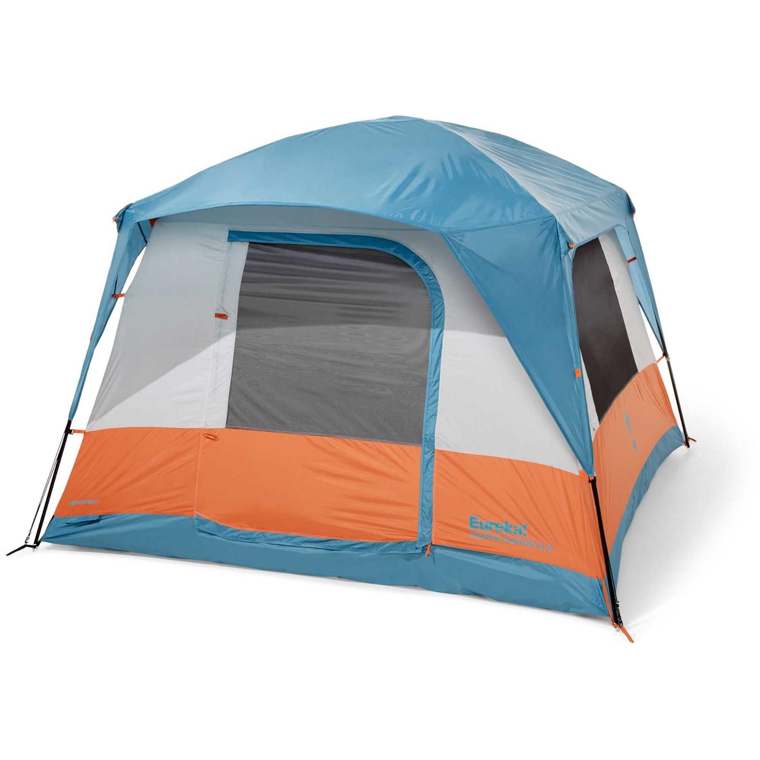The Eureka Copper Canyon LX 6 features super-fast and easy setup, smart design features and weatherproof construction, making it an exceptionally comfortable family car camping tent. Rugged frame uses pole sleeves, corner hubs and quick clips for fast 1-person set up. Durable steel and fiberglass poles. Tent body is made from 75D 190T polyester taffeta with 1200 mm PU coating. Near-vertical walls create an impressive amount of usable interior space. Large mesh windows with waterproof curtains provide ventilation and great views. Extended fly coverage over the door offers extra weather protection. Several stash pockets and a gear loft help keep your gear organized. No-see-um mesh keeps bugs out. This is a supercomfortable, sturdy and roomy family tent. Zippered E Powerport lets you bring an extension cord in for lighting and charging electronics. Imported.