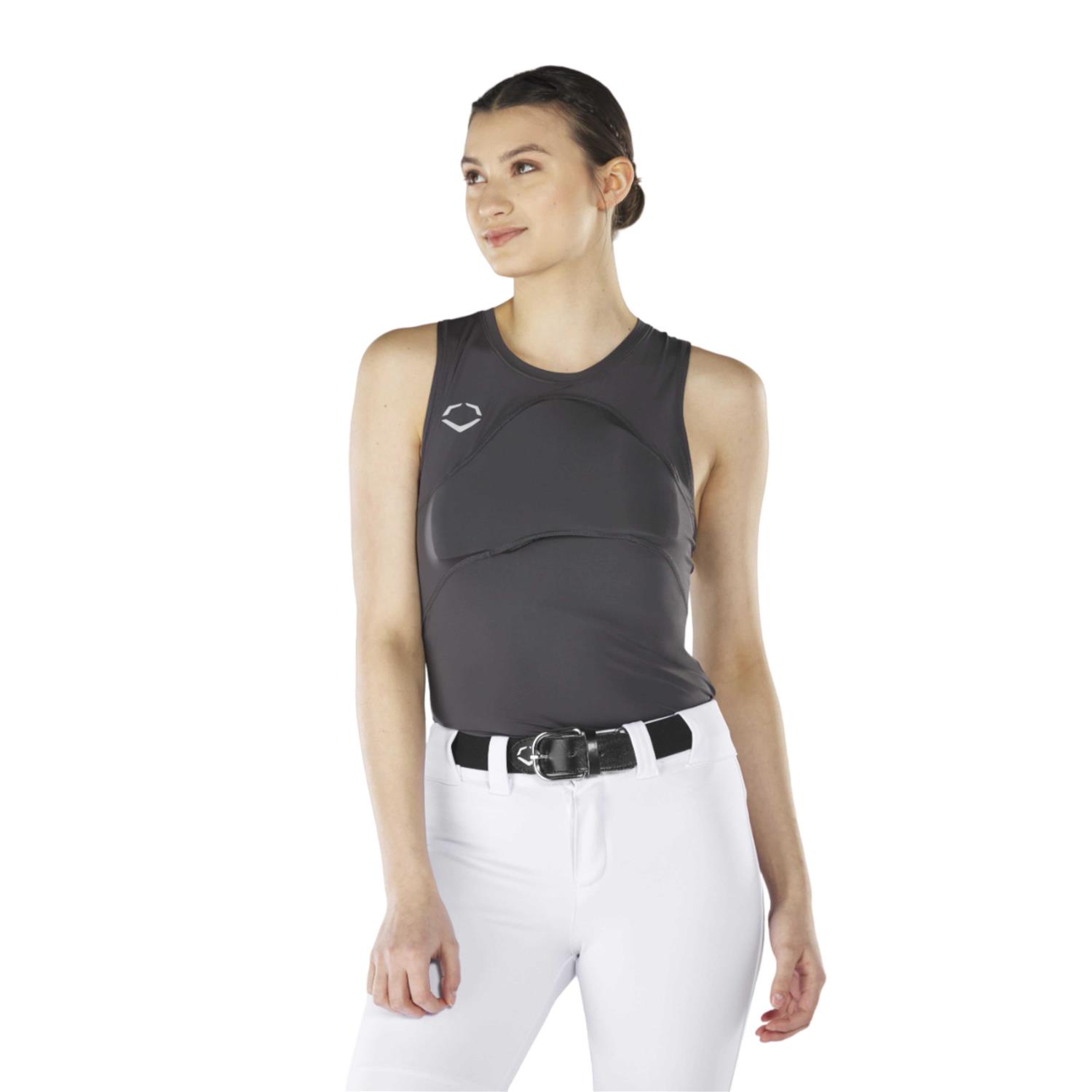 EvoShield fastpitch youth racerback chest guard help protect your athlete from direct chest impact while giving them confidence on the playing field. The custom-molding protective shield simply slides inside the shirt pocket and molds to the contours of the chest to provide maximum comfort and mobility. Season saving protection, game-changing performance. Features: gel-to-shell technology: transforms the soft insert into a protective shield in minutes. Disperses impact and protects better than traditional foam and plastic gear. Moisture-wicking fabric keeps you cool and dry, provides seamless compression and protection under your uniform. Four-way stretch poly/spandex compression shirt pockets. Shirt fabric is machine washable, air dry. Shield is removable and hand washable. Simply remove it from the foil bag to air activate the custom-molding process and wear for 30 minutes until it has completely hardened. Fit the shield once and use all season long.