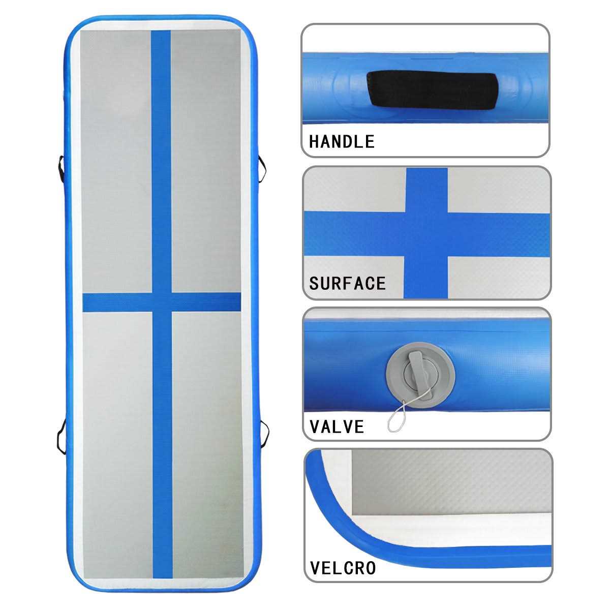 Wide application : you can place the gymnastics mat on the artistic gymnastics floor, in high-performance training, fitness clubs,park or rental business. Also, it could be used on beach or water,backyard, grass land . Just make sure there is no fire around or sharp things Durable material : The air tumbling is made of double-wall material (also know as drop stitch material), and 0.9mm thickness durable commercial grade PVC tarpaulin. Airtightness and durability Easy to handle : The inflatable air tumbling mats can be fold and unfold quickly, Optimum air pressure in all conditions, up to 5psi. they take up less space after deflating. Complete accessories : You will receive an air pump . Only take several minutes to inflate or deflate.. After inflation, the Air tumbling will maintain its pressure for days. With the durable carry bag, it will be easy to move around the gym. The air ramp increases the repetitive frequency and reduces the chance of being hurt strong EZ GLAM gym home series, make your gym training easier any where /strong br / br / strong Home-edition gymnastic mat different size: /strong br / br / DIFFERENCES WITH THE AIRFLOOR The Airfloor is 20 cm high, gives more bounce . br / br / Air floor: 3ft wide x 16ft long x8 in thick (purple/black/light blue/pink/green) br / br / strong Features of Gymnastics mat : /strong br / br / a. Set up in your living room, back yard, at the beach, anywhere, whether indoor or ourdoor. br / br / b. Easily portable from gym to gym. The Air Floor is so light and small it will easily fit on the back seat of your car. br / br / c. Inflating and deflating is done in a single minute. br / br / d. You can set the pressure to anything between rock-hard and bouncy-soft. br / br / e. Jumps can be repeated more often with less chance of overuse injuries than on traditional training equipment, martial arts, elderly gym, fitness … AND MORE! br / br / strong Note: /strong br / br / 1. Due to manual measurement,please allow 1-2cm difference. br / br / 2. Picture shown, which mainly lies in different light effect and computer monitor. br / br / strong Double Package – inner handle bag,outer thicken box /strong br / br / 1. Air floor br / 2. Electric pump/ Foot air pump br / 3. Handle canvas bag br / 4. Repair kit br /