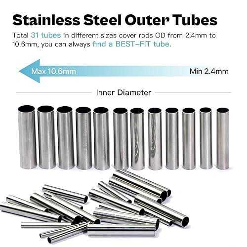 - More sturdy and powerful repair with outer stainless steel tube (31 different sizes) and inner carbon fiber stick (8 different sizes) insert.