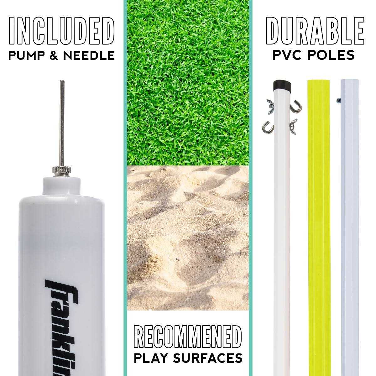Whether you’re in the backyard relaxing at the park or heading out for a day at the beach this 5-in-1 game set from Franklin is a surefire ticket to family fun! It includes a net that’s quick and easy to set up plus all the equipment you need to play volleyball badminton flip toss paddleball and flying disc. It’s great for getting everyone up and moving! Recommended for ages 6+ yearsIncludes net all the necessary equipment for volleyball badminton flip toss paddleball and flying disc plus instructions and game rulesGreat for the beach and backyard fun!