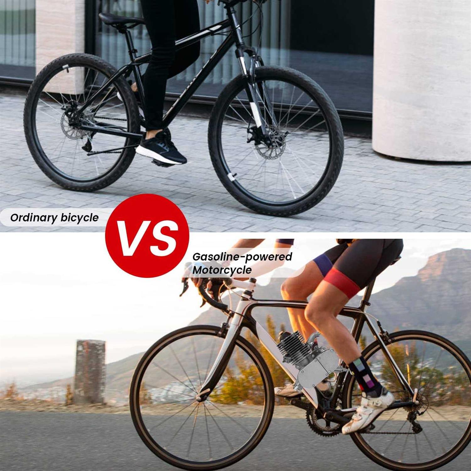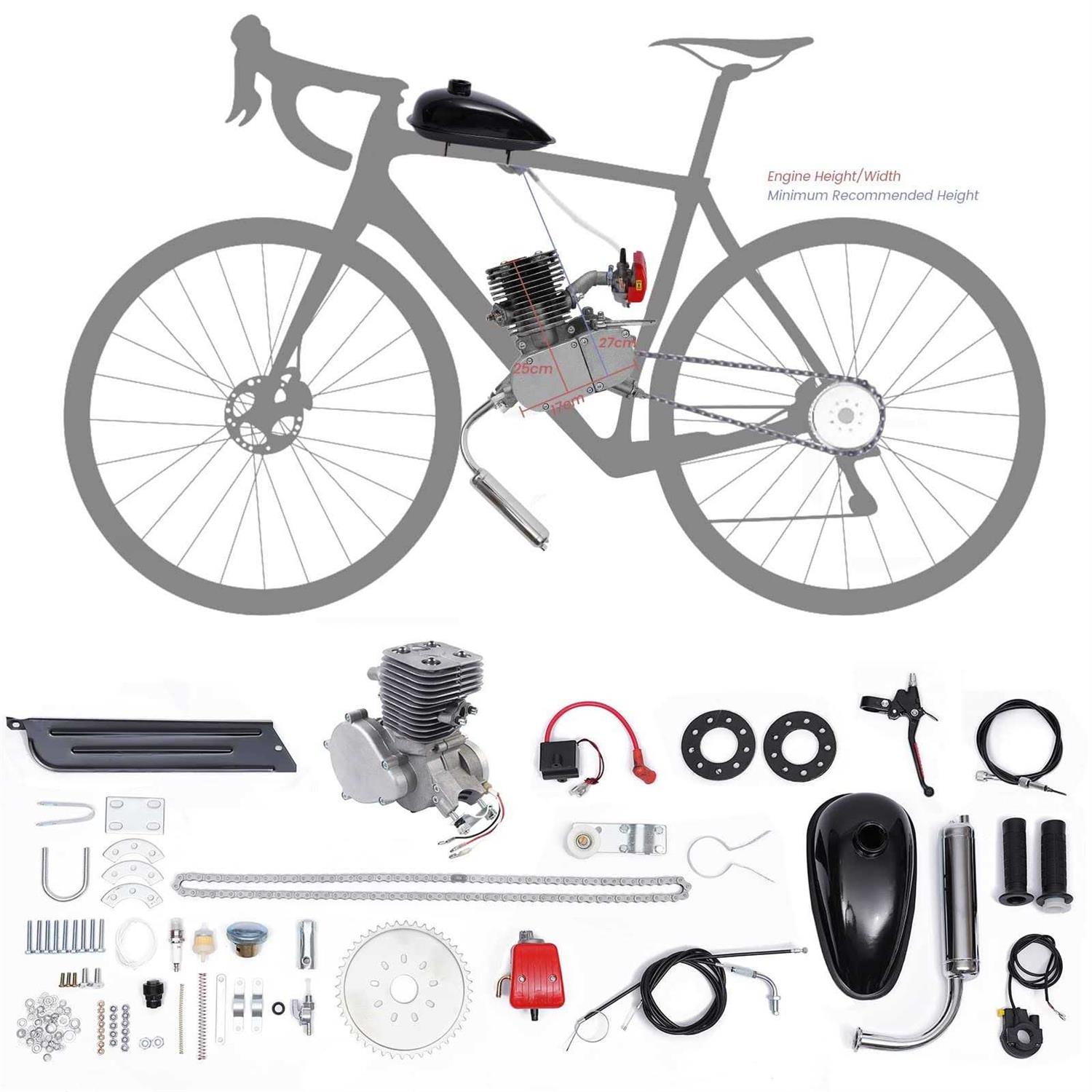 Brand: Frederimo Color: 100cc 2 Stroke 36 Tooth Features: 【44 Tooth Bicycle Engine Kit】This 2 Stroke Bicycle Motor Kit includes all the parts and accessories needed to convert a regular bike into a gasoline-powered motorcycle. Ideal to upgrade the regular bike to a motorized bicycle. Sproket :36 Tooth. 【Upgrade Motorized Bicycle Kit】This 100cc petrol gas engine kit suitable for most 26″ or 28′ wheeled bikes with V-frame. Such as mountain bikes, road bikes, cruisers, choppers. Engine requires 8oz 2 Stroke oil per gallon of gas during Break In Period. 【Super Fuel-Efficient】Perfect for upgrading from a regular bike to an electric bike, you can enjoy a faster ride. Low fuel consumption, 150 miles per gallon, very energy efficient and economical. Max. Load capacity:180kg(396lb),Top Speed: 48km/h. 【Easy to Install】Comes with all needed accessories for easy installation. Equipped with detailed instructions, this instruction contains every detail of the assembly steps.