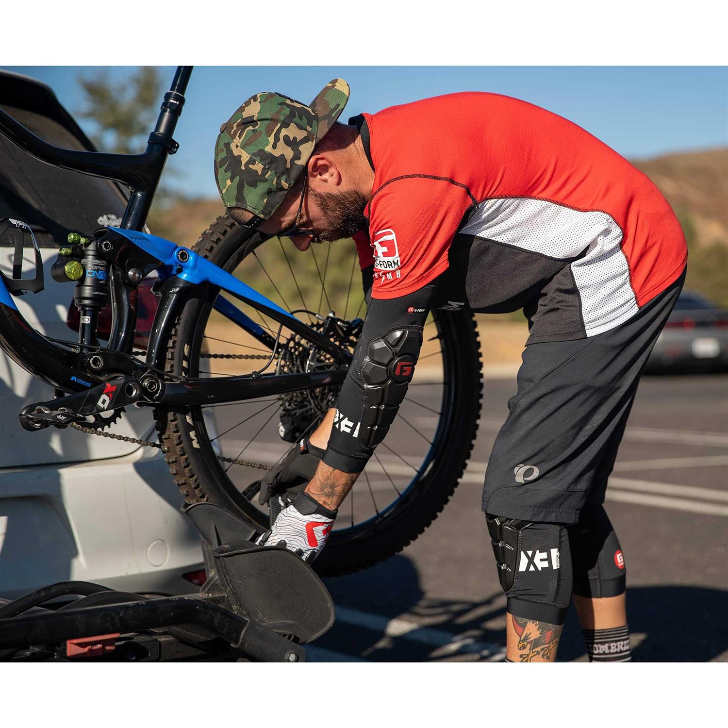 None is lighter, smaller stowable and more comfortable than the Pro-X3 Elbow Guard by G-Form. The soft, elastic Smartflex foam is sewn onto a fine Lycra stocking and underlaid with a soft EVA foam. Thus, the G-Form Pro-X3 Guards nestle around the elbow almost like a second skin and allow hours of riding without disturbing. The G-Form protectors are ventilated and thus much less sweaty than conventional protectors, but still protect the elbow effectively from drafts. As there is hardly any weight and thanks to the rubberized ends, the G-Form protectors hardly slip. The Pro-X3 Elbow Guard is available in five different sizes, so one is sure to fit perfectly. The Pro-X3 Elbow Guards are recommended for CC to freeride, park and 4X use. The Smartflex polymer foam is only 8 mm thick and hardens within milliseconds after an impact, absorbing up to 90% of the energy. Afterwards, the foam immediately becomes soft and supple again. The waterproof pads seal foam eroding sweat and the Pro-X3 can be washed at 40 °.