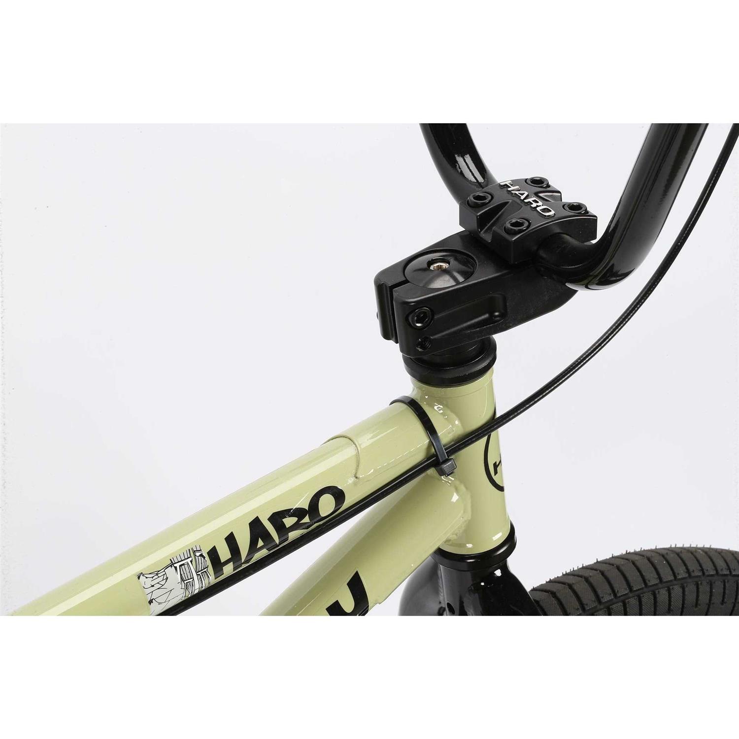 Hi Ten Frame with 1-1/8″ steerer tube and U brake mounts1-1/8″ Hi Ten Threadless fork7″ Rise Hi Ten 2 piece bars – Forged Haro Top Load 48mm reach stem – Haro Padded 8mm railed saddle – Haro Team grips39/ 16 gearing – Haro MS5 2.35″ Wide Tires