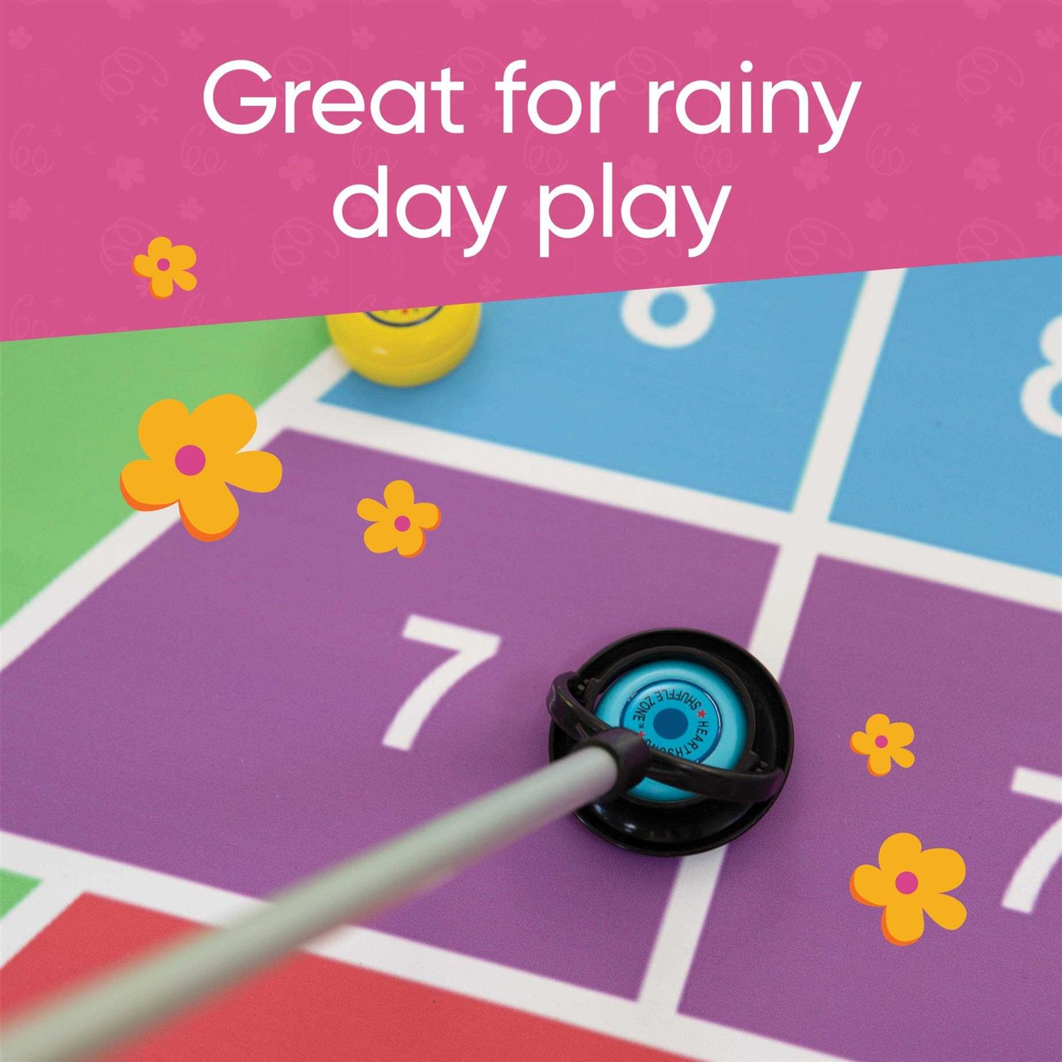HearthSong Shuffle Zone Shuffleboard Family Game with Oxford Mat and Rolling Pucks