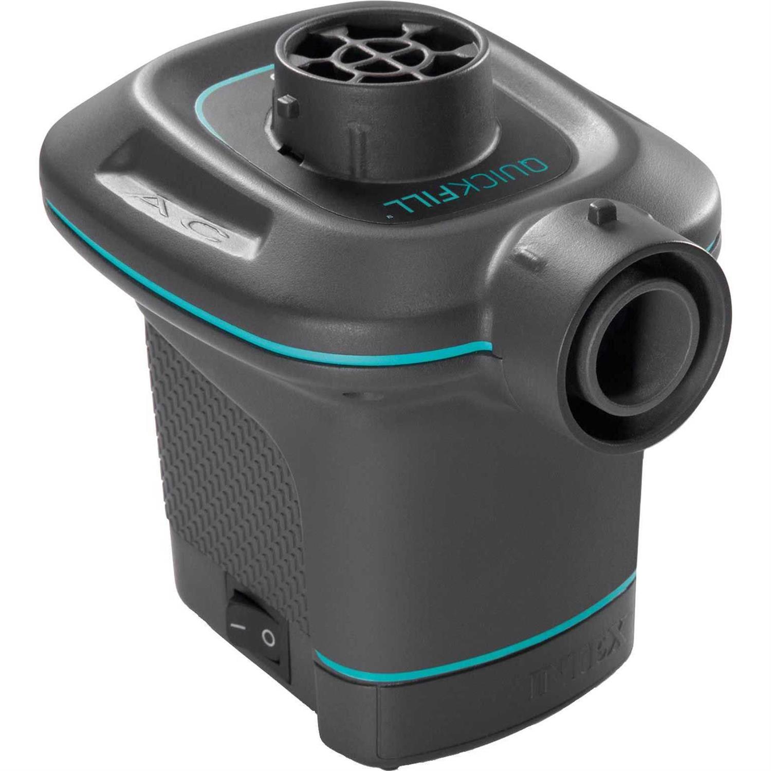 Product Description: 3 interconnecting nozzles to fit small, medium and large air valves Plug into standard household electrical outlet Sleek design fits perfectly in the palm of your hand UL listed This pump is a great tool to have around any home. Perfect for inflating pool toys, air beds, river rafts, pool floats, boating tubes and other inflatable. items Specifications: 120 VOLT ELECTRIC PUMP. Brand Name: Intex. Product Type: Pool Pump. Height: 5.5 in. Width: 5.375 in. Length: 5.375 in.