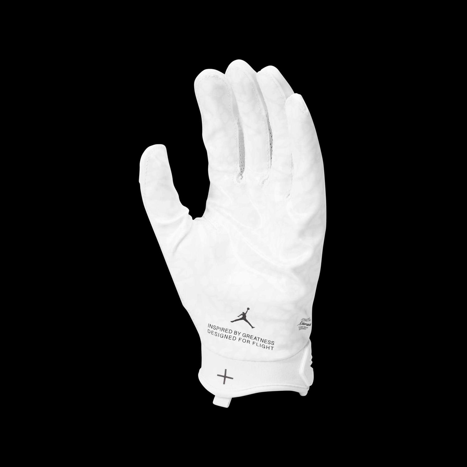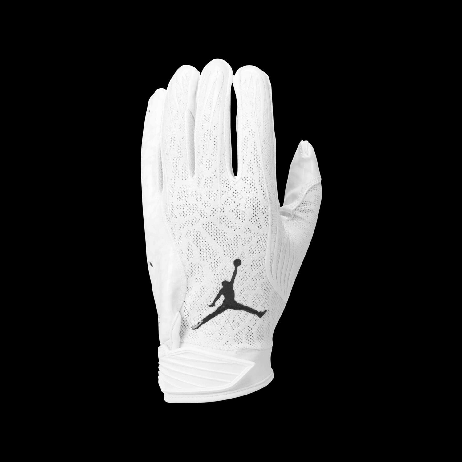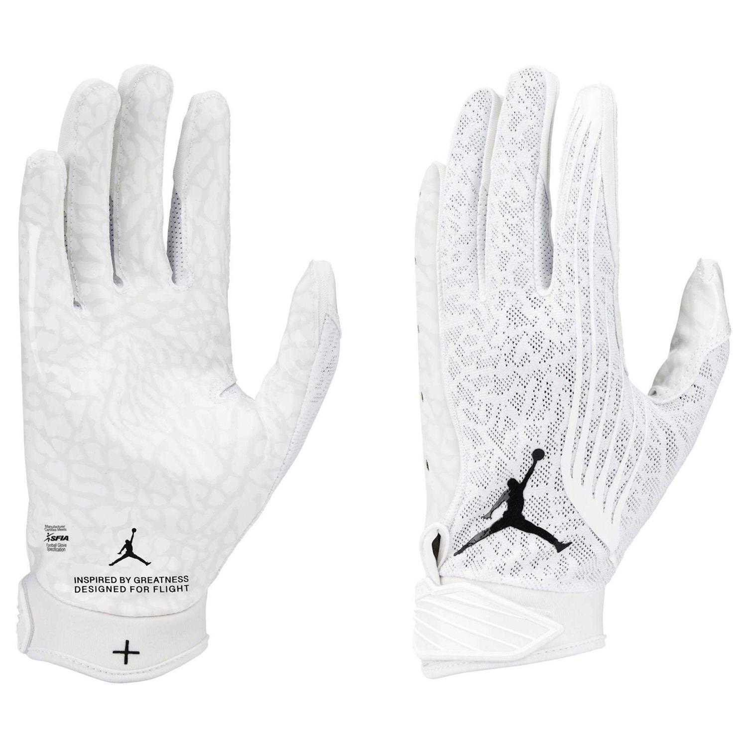 With Jordan Fly Lock Football Gloves make the catch without worrying about fumbles or gloves slipping off your hands. The Magnigrip+ palm helps you secure the ball in your hands, and the knit fabric stretches to feel like a second skin. A silicone overlay on the back helps to keep the gloves in place throughout the game. Benefits Magnigrip+ palm improves grip to help secure the catch. Stretchy knit fabric enables a second-skin fit while allowing your hand to move freely. Wrist strap helps create a secure and comfortable fit.
