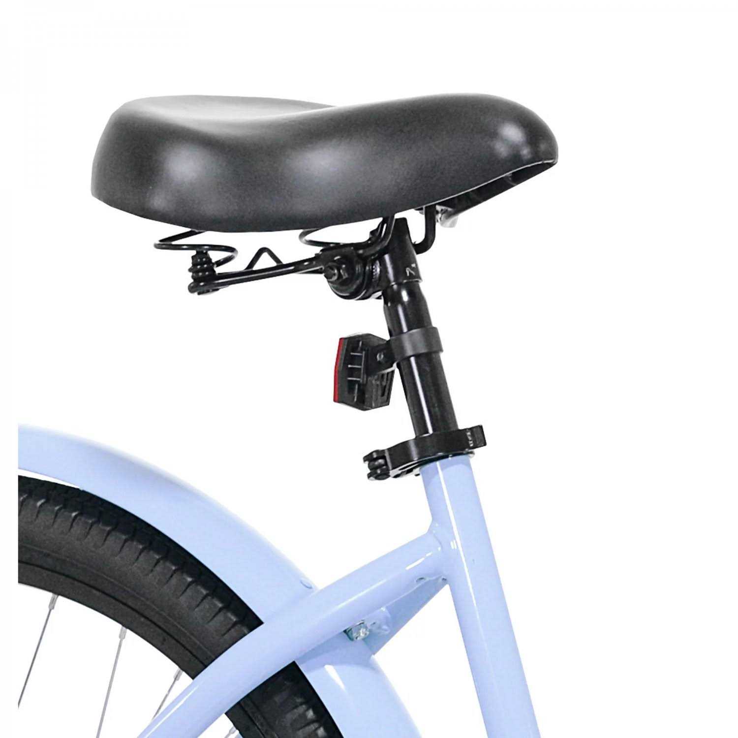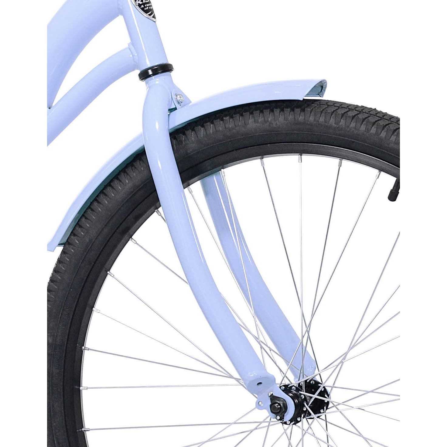 Kent Bicycles 26-inch Ladies Seachange Beach cruiser bicycle is a beautiful glossy periwinkle beach cruiser bike features a durable steel frame with matching front and rear fenders. Seachange is equipped with a deluxe adjustable cruiser saddle with extra padding and soft rubber comfort grips. The smooth-rolling cruiser tires allow for a comfortable and relaxed ride over a variety of seaside terrains. Simple and intuitive, this cruiser is equipped with a single speed drivetrain and low maintenance, easy-to-use coaster brakes – just pedal backward to stop. The wide swept-back adjustable handlebar makes the bike comfortable to ride for a wide range of riders.