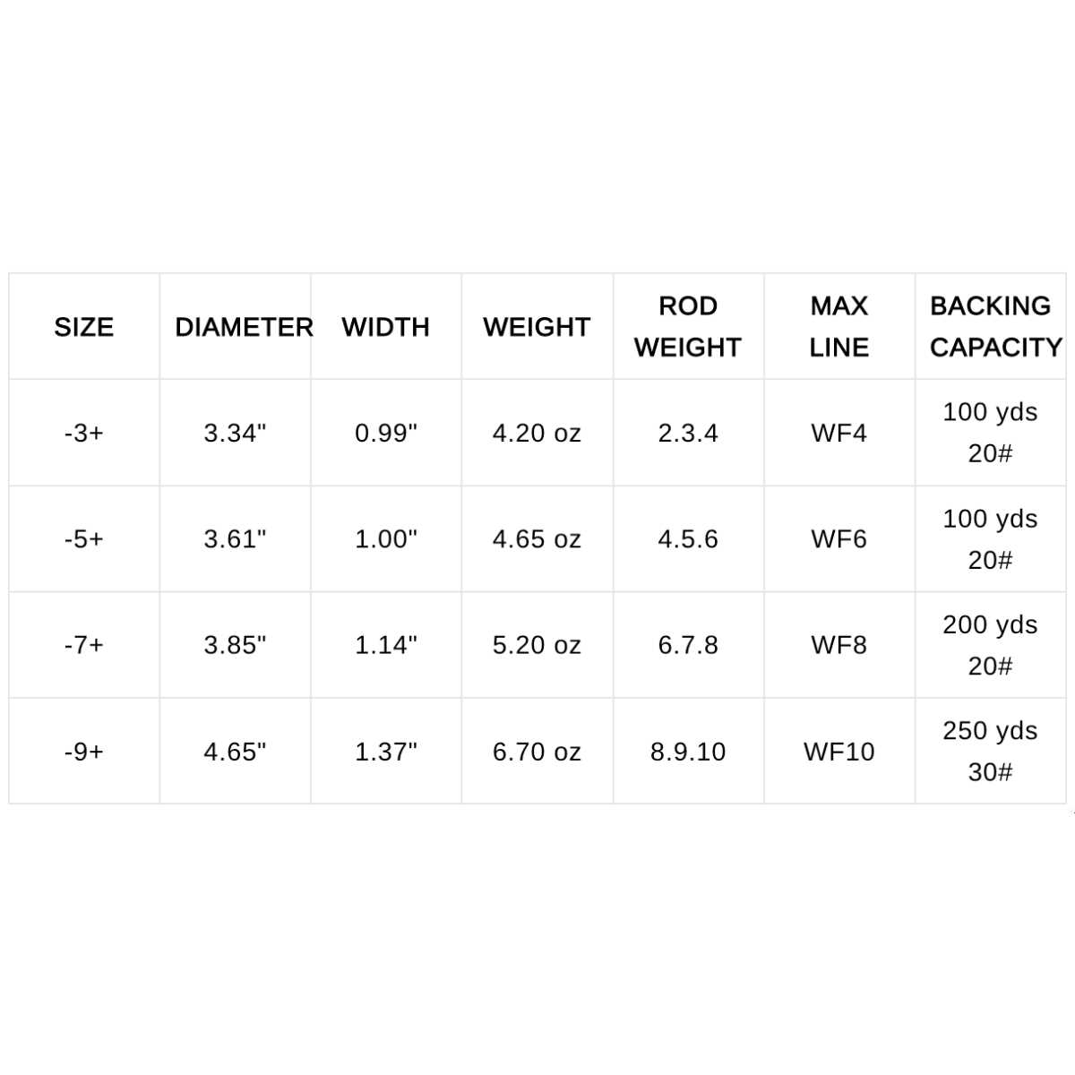 - Polyurethane coated 50% US Manufactured, 100% Idaho Built MODEL DIAMETER WIDTH WEIGHT ROD WEIGHT LINE BACKING CAPACITY Liquid -3+ 3.