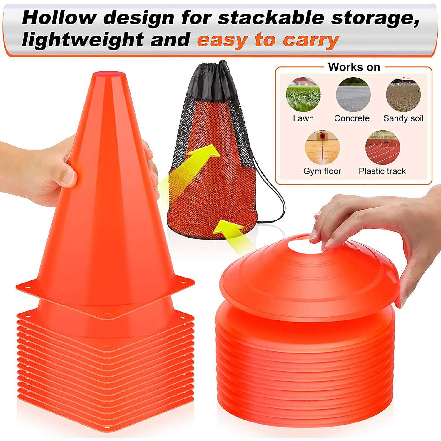 Whether you are training for soccer, basketball, rugby, or just for your own fitness, you need to have the right sports training equipment. These bright orange cones are perfect for agility training for outdoor sports or indoor sports. The training cones can be used as an obstacle setting for foot movement training and some training subjects. It can be placed in a width as well as a certain height, which can serve as a reminder. A combination of cones and discs can be set up for different training subjects to enhance the ability to combine the ball, look up, and make decisions. They are also the best equipment for physical coordination training.
