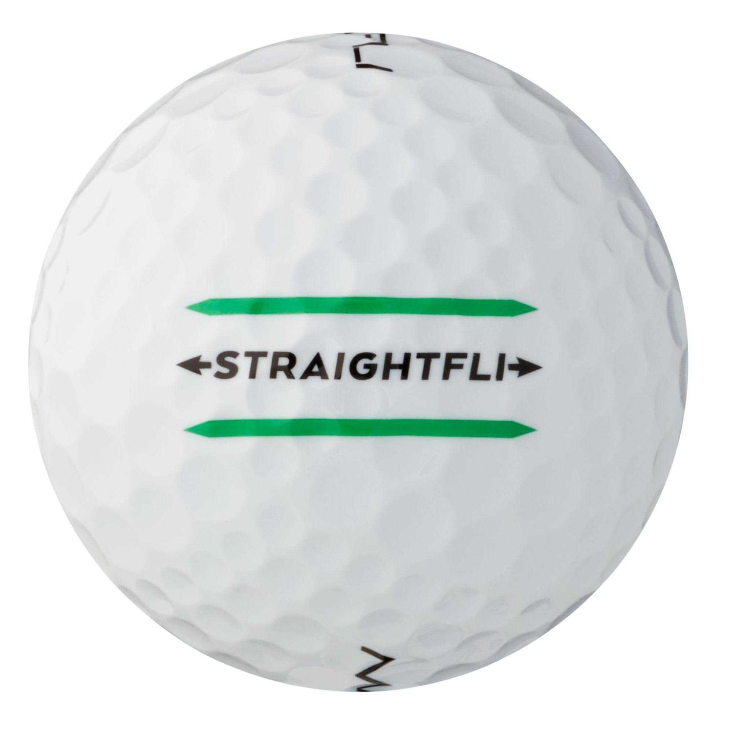 Designed for straight ball flight and longer distance, Maxfli Straightfli Golf Balls feature a Next Generation Core and fairway dimple pattern. FEATURES: Independently robot tested to deliver straighter flight. Next Generation Core designed for faster ball speeds and longer distance. Lower compression for a softer feel. Cube octahedron design with 374 large and small dimples in a stacked and packed pattern optimizes launch and lift for a straighter flight. Enhanced alignment aid.