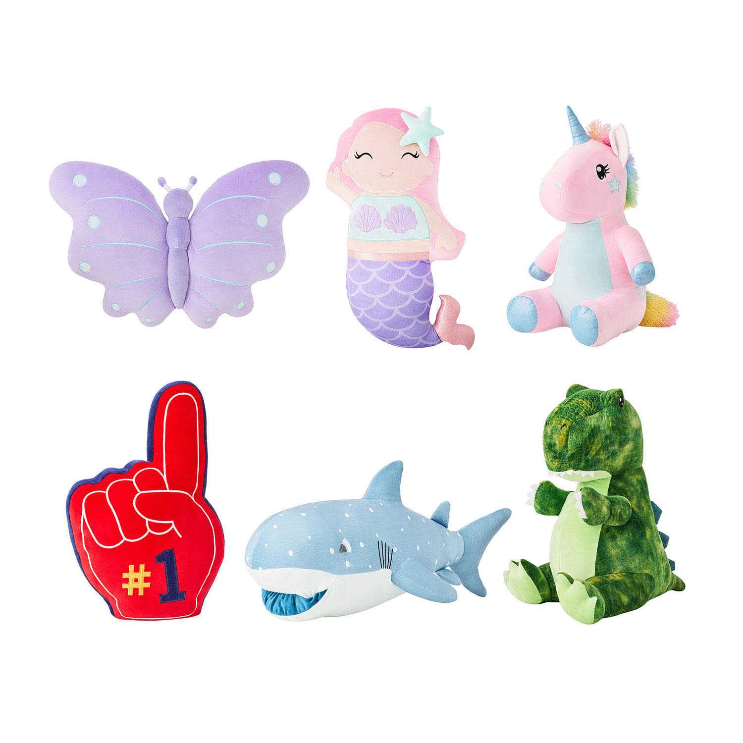 Spark your little one’s imagination and surprise them with a Member’s Mark Kids’ Squishy Pillow. They make the perfect gifts for birthdays, holidays, special occasions or ‘just because.’ This whimsical character pillow is a fun decorative accent for your kids’ bedroom or playroom decor.This squishy pillow is inspired by the wildly popular squishy foam toys kids currently love to collect (and squeeze). Each adorable kids’ decorative pillow has an irresistibly squishy texture thanks to its durable, slow-release filling that resumes its original shape after it is squeezed. Your child can choose from six fun styles, including unicorn, dinosaur, mermaid, sports, butterfly and shark. Pick one or collect them all. There’s no such thing as ‘too many pillows.’ (Each squishy pillow is sold separately. The butterfly and shark pillows are available online only.) Decorate with the Member’s Mark Kids’ Squishy Pillow to complete your child’s themed bedroom or playroom and add a little extra magical charm to their days. This adorable pillow is super cozy, soft and comfortable enough for them to cuddle up with at night or use during naptimes.More than just decorative, this super-soft accent pillow doubles as a comforting huggable plushie. Kids can use this decorative pillow as a cuddly companion at bedtime and a plush character for imaginative play. The pillow’s squishy texture helps provide a soothing sensory experience that kids love. This pillow is recommended for kids ages 3 and older.The Member’s Mark Kids’ Squishy Pillow is made from polyester and spandex materials for a soft feel and durable design that’s designed to last. You can easily keep this decorative pillow looking and feeling fresh by machine washing it gently and separately as needed. Member’s Mark Kids’ Squishy Pillows coordinate with other Member’s Mark collections. With so many designs and colors available, you can select one or more Member’s Mark pillows to mix, match and collect.
