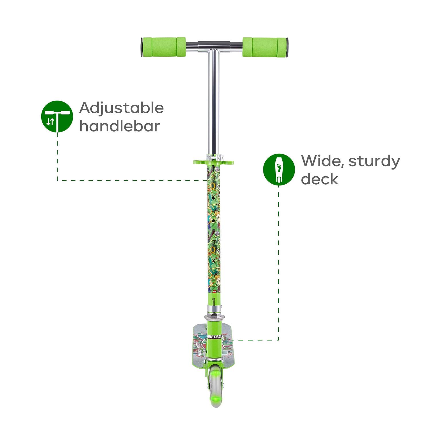 Minecraft Kids Kick Scooter with Light-Up Wheels, Green