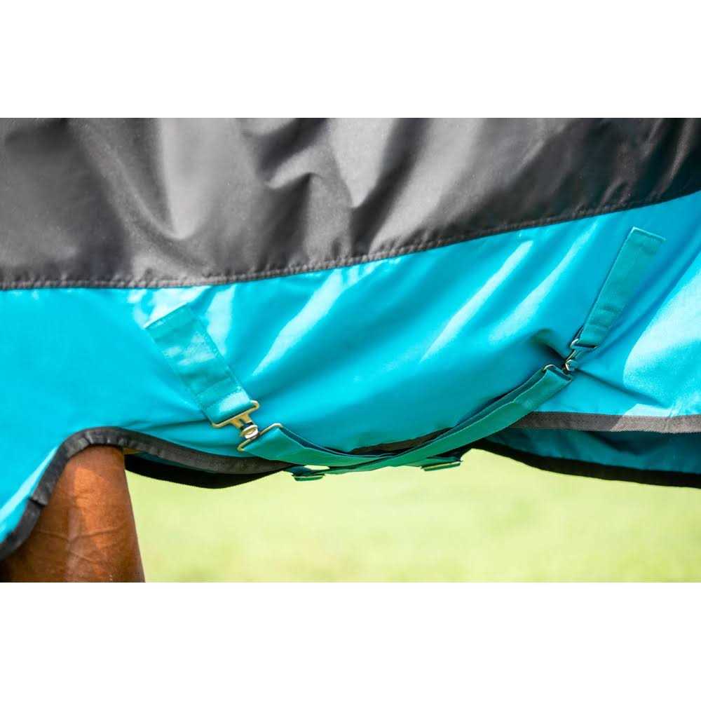 The Mio Turnout Lite protects your horse from rain and mud with a waterproof and breathable 600 denier polyester shell. It has a coat-smoothing polyester lining and no fill. Constructed with the Horseware cut, straight front closures and Front Leg Arches for full coverage and comfort. The combined design elements of a tail strap and back darts on this sheet prevent it from shifting while the horse is moving and provide a safe and comfortable fit that eliminates the need for leg straps. Imported. Sizing in 3″ increments.