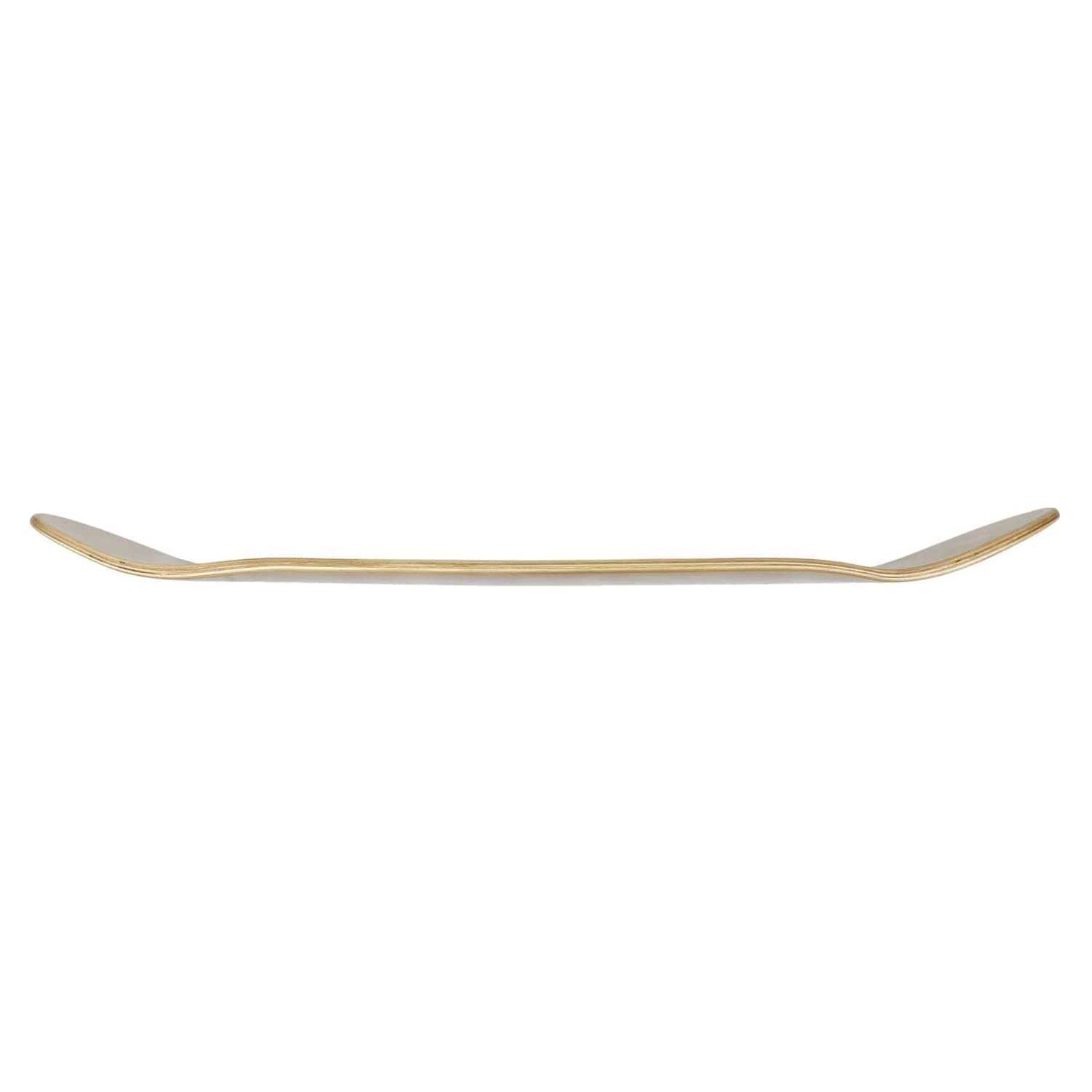 Traditional 7-Ply Construction. The most common skateboard construction consists of seven layers of maple wood veneer, which are pressed and glued together with strong adhesive. Maple is a dense hard wood that provides excellent strength and pop, making it the tried and true standard for decades. Moose decks feature a modern shape. Full of pop, Moose boards have a mellow concave with steep kicks. The perfect combination of flex, stiffness, strength, and lightness. This Moose skateboard deck measures 8.75″. There are no hard rules on what size skateboard should be ridden. Full size skateboards (7.5” – 9.0”) are recommended for skaters 13 and older. The most common size boards right now are 8.0” or 8.25”. This a high quality skateboard deck that is simply devoid of graphics or artwork. This is not necessarily a lower quality deck than the average “pro” deck, it’s cheaper because the lack of graphics make the boards easier to produce efficiently. The savings is passed along to the consumer. Blank skateboard decks are especially attractive to artists or skaters that want to create their own graphics. This blank skateboard deck is essentially a blank canvas that is ready to be painted.