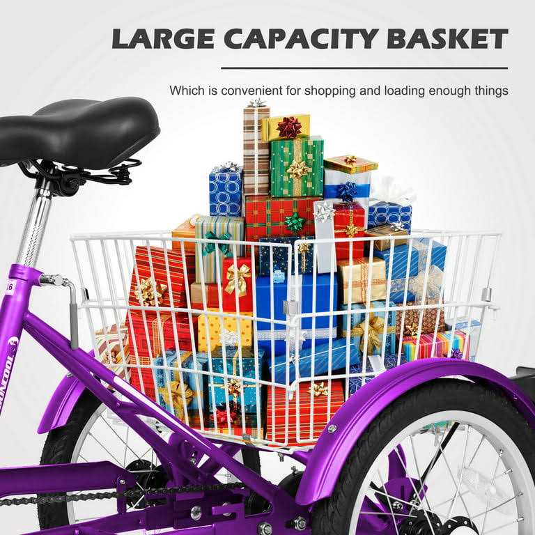 Mophoto 16 inch Tricycle Single Speed Cruiser 3 Wheels Bikes, Outdoor Tricycle, Adult Unisex, Size: 16 Wheels, Purple