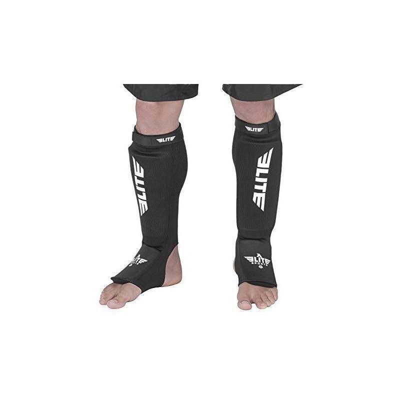 Elite Sports Muay Thai MMA Kickboxing Shin Guards, Instep Guard Sparring Protective Leg Shin Kick Pads for Kids and Adults L-XL