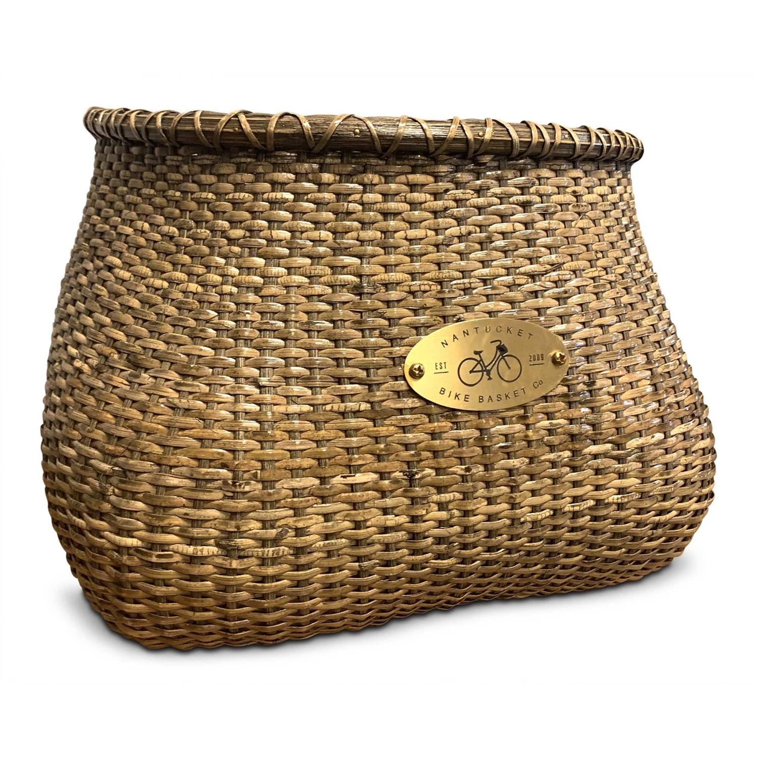 Securely store and transport belongings on almost any bicycle with this Stained Nantucket Bicycle Basket. Handcrafted from a high-quality rattan cane material that is both elegant and durable, the basket is as practical as it is stylish. Designed to replicate the original style of the Nantucket Lightship baskets, which were popular in the whaling era of the 1800s, this piece combines a classic style with modern durability and functionality to create a timeless piece that will last. The included buckle straps allow for easy attachment to the handlebars of most bicycle models.