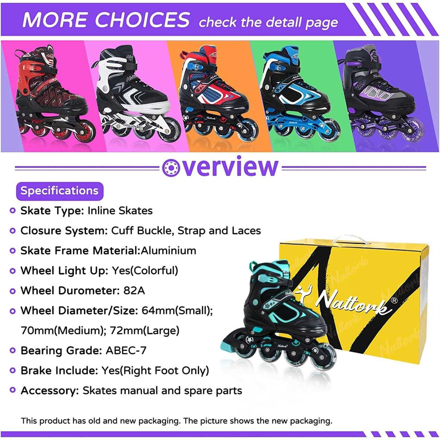 Nattork Adjustable Inline Skates for Kids with Light Up Wheel, Outdoor & Indoor Illuminating Blades Roller Skates for Boys and Girls
