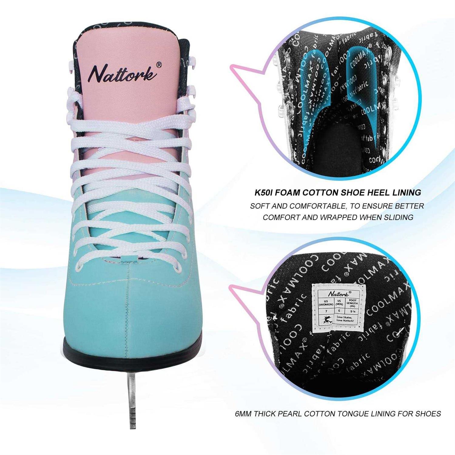 Nattork Figure Skates Excellence Stainless Steel Blades Ice Figure Skating with Enhanced Support Strength Performance and Ultimate