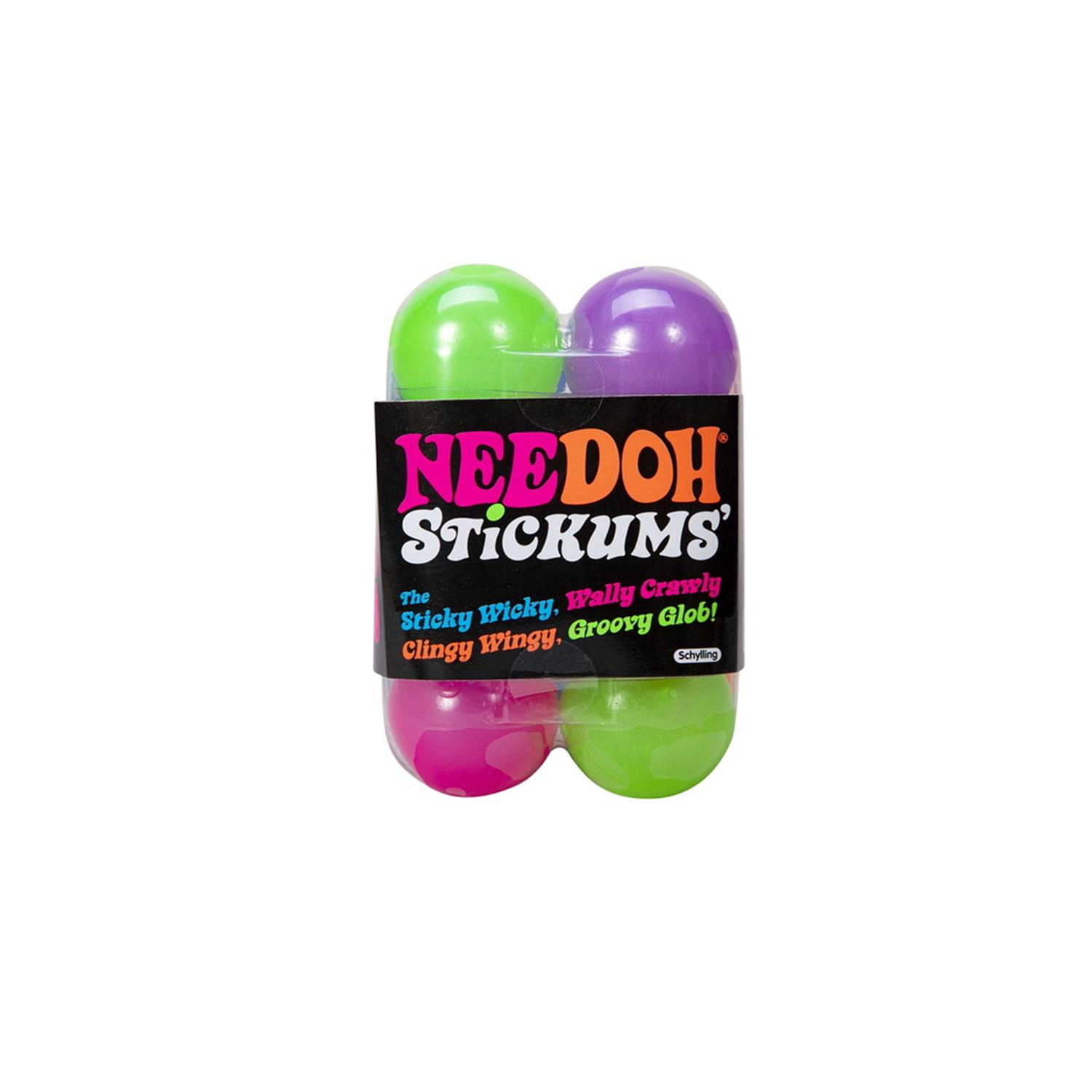 Enjoy air-filled squishy fun with NeeDoh Stickums. Instead of being filled with dough like regular NeeDohs theyre filled with air. These unique Nee Doh stress balls also have a sticky skin that means not only can they be squished and squashed but they can be thrown at walls windows ceilings and any flat surface for fun. Stickums are a great fidget toy particularly appropriate for those with ADD ADHD OCD Autism and anxiety. Gentle on little fingers and made from non-toxic materials.