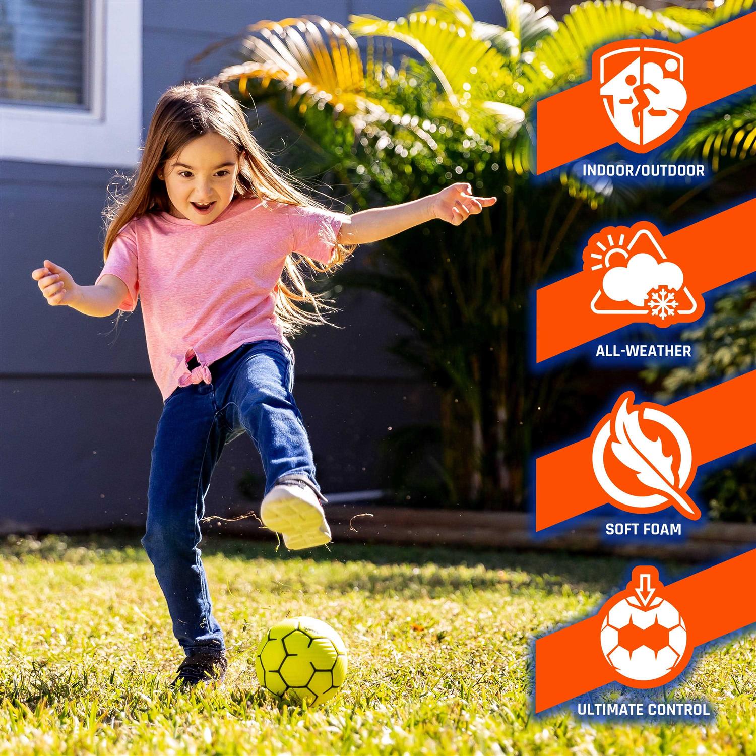 The Franklin Sports Foam Soccer Ball is the perfect ball for the backyard, the beach, your neighborhood barbeque, or any tailgate play! Created with the fun of the sport in mind, the soft foam ball provides younger athletes with a real soccer feel to promote confidence and get involved in the game! This is an excellent tool for kids, adults, and friends of all ages to play together! The bright neon colors make it easy to see in any kind of lighting! Get out and play with the best foam soccer ball in the game! Perfect for indoor or outdoor play. Item weight is 0.07 Ibs