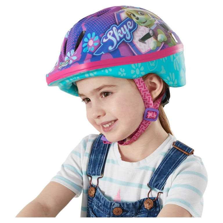 Countless puppy pal driveway adventures await with the Paw Patrol Skye Helmet. Your little one will be excited to wear their new helmet and take Skye with them wherever they go. Thanks to the 360 adjustable dial fit, the helmet size is customizable for the perfect, comfortable fit for children 3-5 years old. The lower molded shell design adds durability and extra protection in the rear, while the top vents keep little noggins cool on hot summer days. Safety just got a style upgrade with the Paw Patrol Skye Helmet!