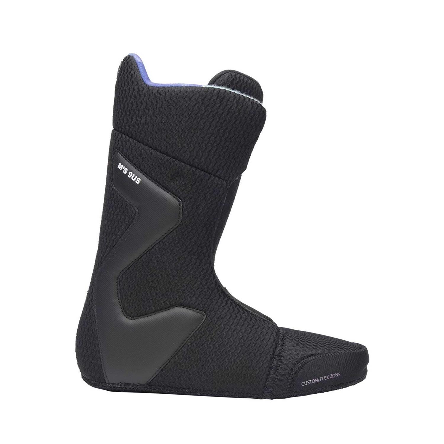 The Rift is a softer boot that allows you to express your own style but which is still packed with tech. It’s 3D-moulded for a perfect fit with Nidecker’s bindings, combining sneaker-like looks with modern materials including a unique seamless toe construction. The Dual Dial BOA Fit System gives you complete control over the fit and flex, with separate dials to tighten the upper and lower zones. The flex is super tweakable, and thanks to an articulated two-part shell you can apply pressure to one side of the boot without deforming the other, creating consistent support and awesome heel hold. It’s a super lightweight design, too, with a low profile BFT Ascent outsole to provide cushioning underfoot and traction on any surface. A Transition Zone connects this sole directly to the rubber backstay without any exposed edges, protecting the back of the boot and prolonging its life. Finally, the Rift comes loaded with OC-Kush foam dampening and a Silver heat-moldable liner for total comfort from day one. It’s a killer package made for park laps, soul turns and creative all-mountain shralping.
