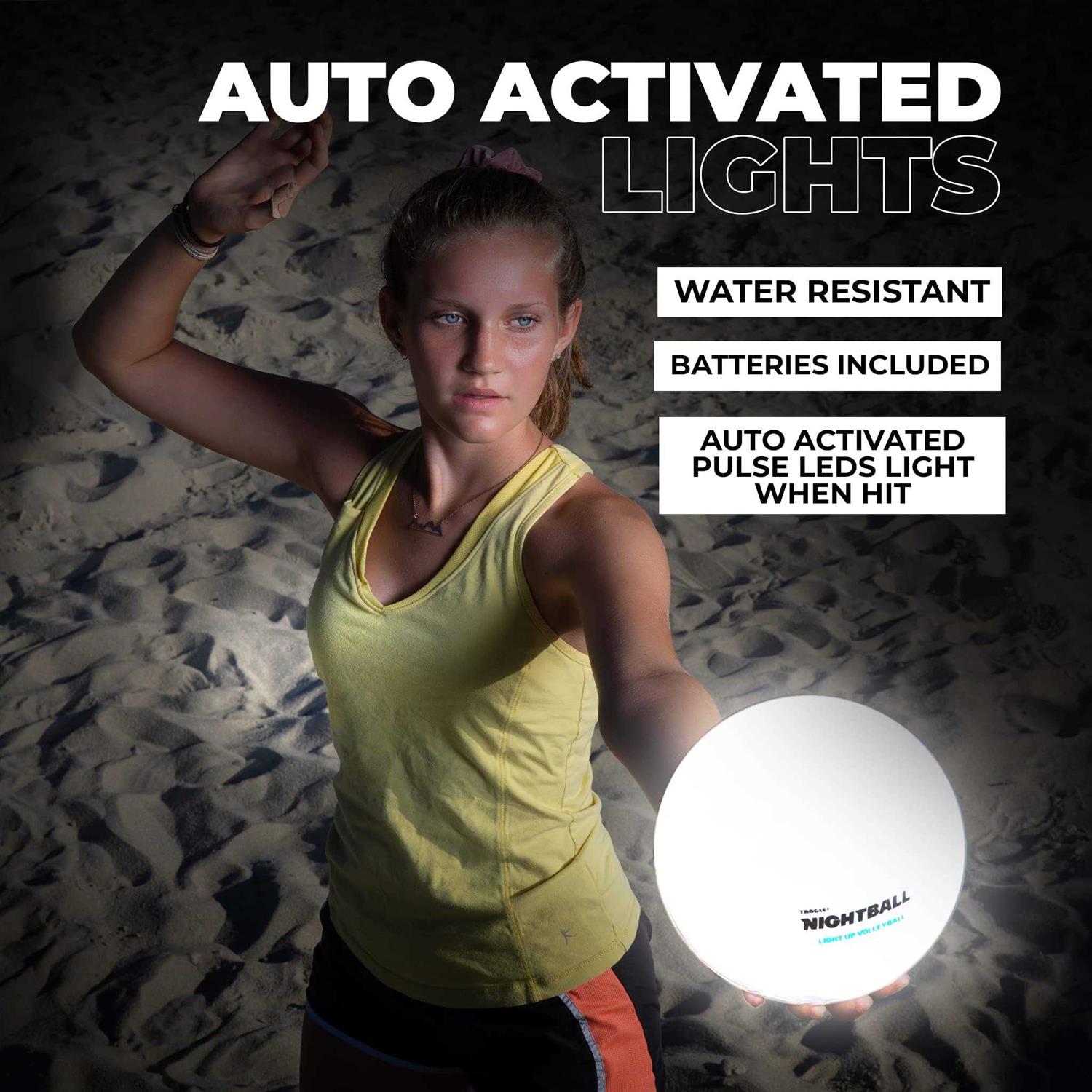 Extend your summer hours with the new NightBall Volleyball. Incredibly bright and water resistant, you can hit the beach well after sundown! With two super-bright LEDs built right inside, the NightBall Volleyball gives you twice the brightness at all hours of the day and night! That means more passing, setting and spiking for volleyball lovers everywhere! Great for playing in the pool!
