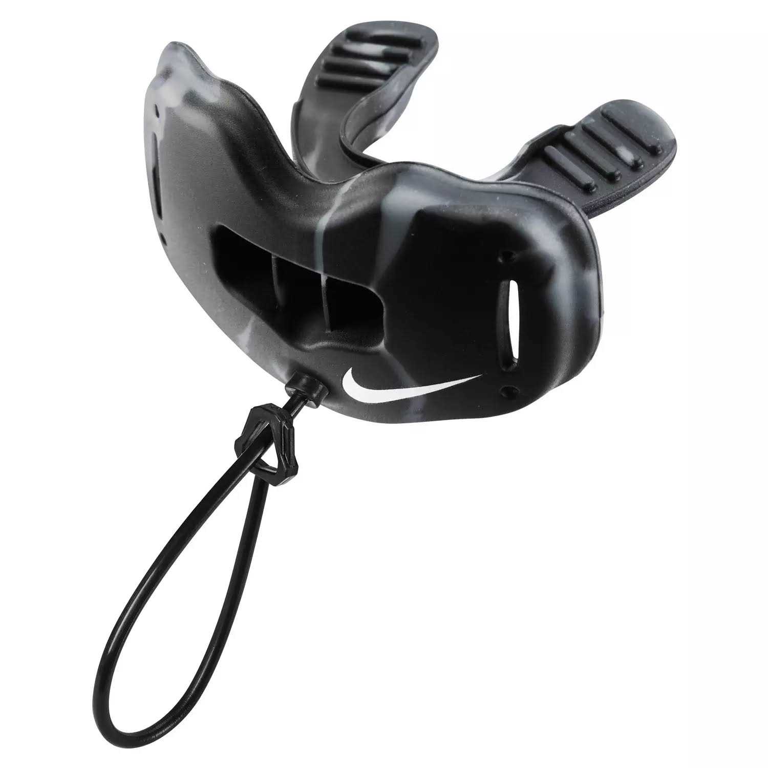 The Nike Alpha Lip Protector Mouthguard features a lip-protecting design that absorbs shock for comfort and peace of mind. No need to boil or mold, this mouthguard comes ready to use and has O-Flow breathing channels for maximum oxygen instake. A quick-release tether allows you take it out quickly for communicating on the field. Shock-absorbing design helps protect lips O-Flow breathing channels help maximize oxygen intake Quick-release tether strap Lip Protector: 100% Silicone Tether: 100% Polypropylene colours may not be exactly as shown Additional Information: PLU: 241185 BRAND: Nike