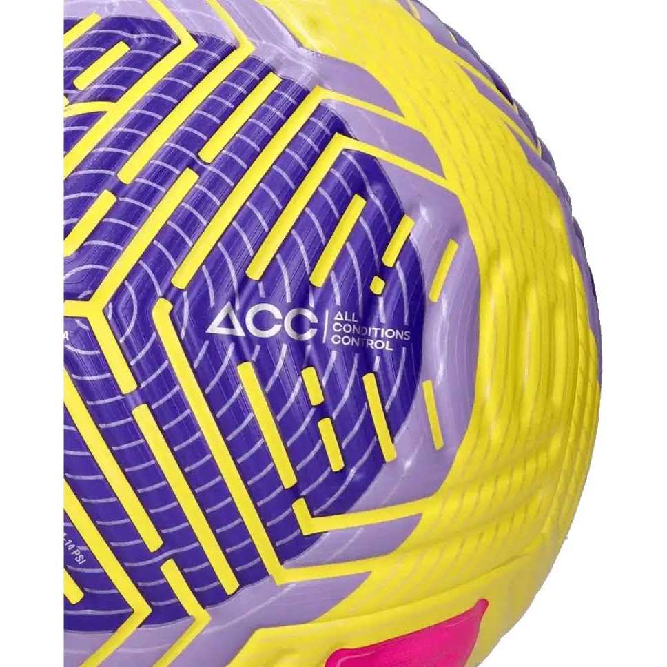Over 1700 hours spent in the lab, and now the future of football is finally here in the form of the Nike Flight Ball. Made with Aerowsculpt technology, which stabilizes the ball’s trajectory by 30%, enabling pinpoint passes. Featuring Nike’s All Conditions Control technology (ACC) with 3D ink, adding a micro-textured surface to the ball for sublime control in all weather conditions. Equipped with an updated specially designed 6-wing carbon latex bladder that ensures explosive acceleration from your foot. Innovative graphic details inspired by military fighter jets give the ball a unique look and make it easier for the eye to track. The ball carries the FIFA QUALITY PRO mark, indicating that it has passed FIFA’s seven official tests under the most demanding conditions.
